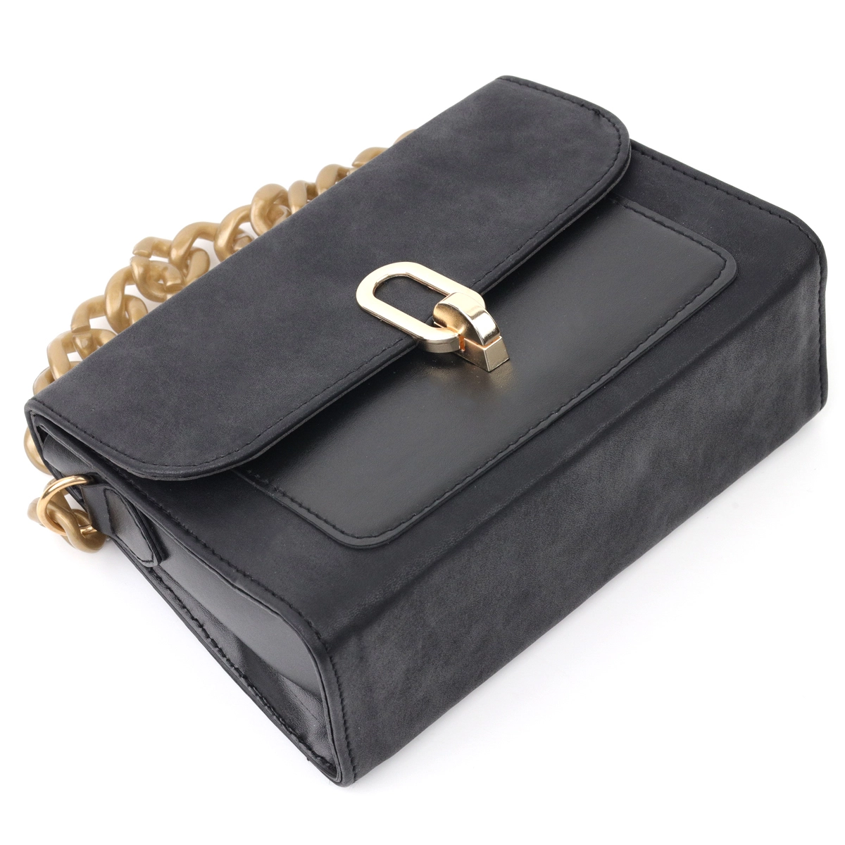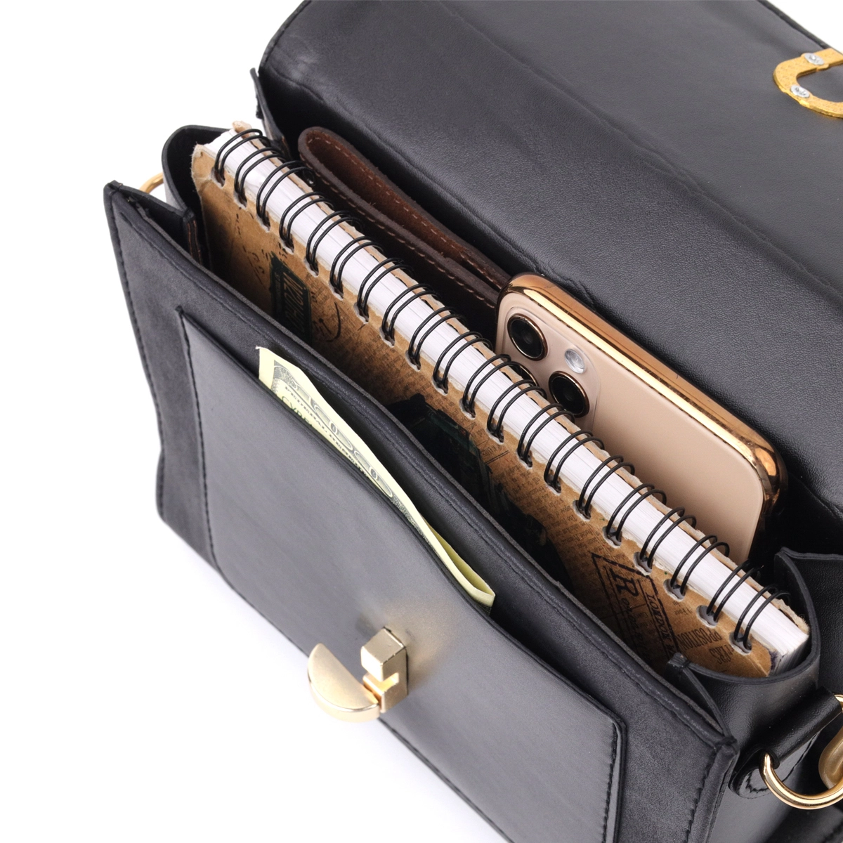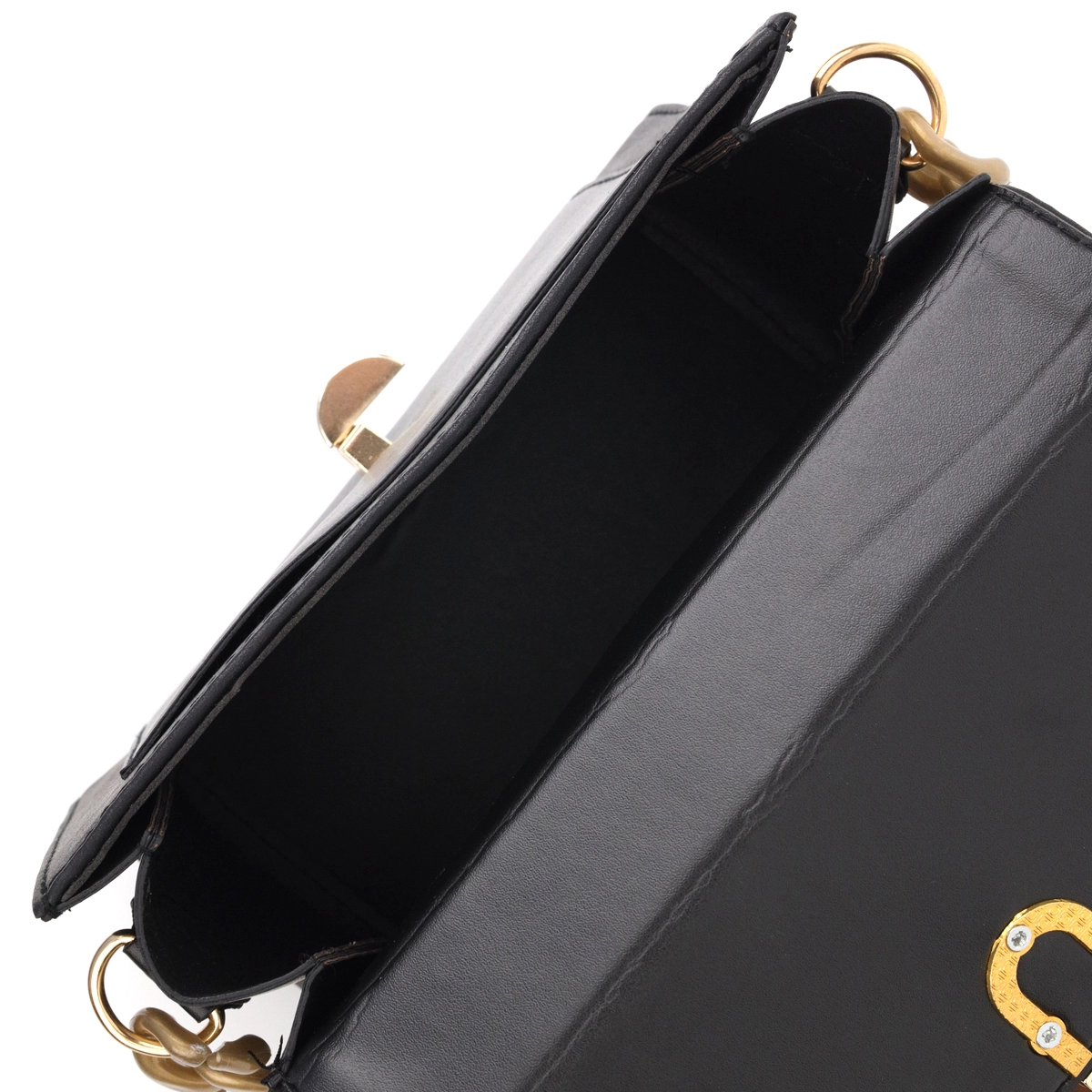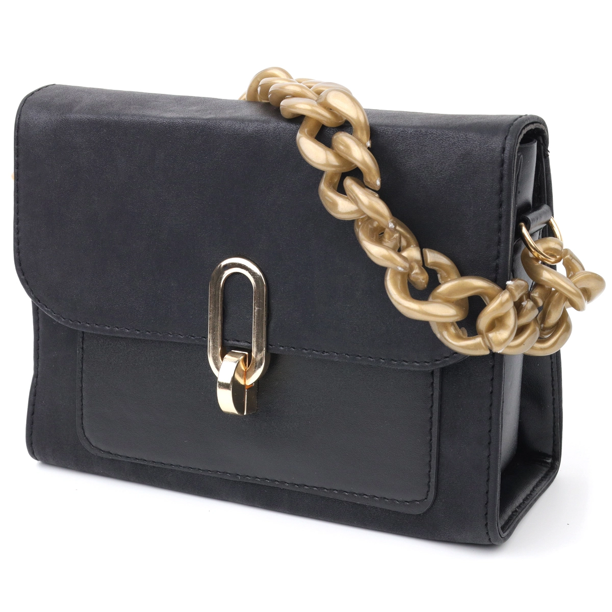 Красивая каркасная сумка черного цвета, из качественной гладкой