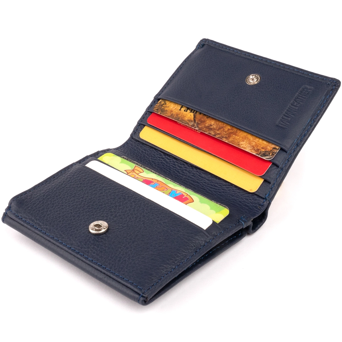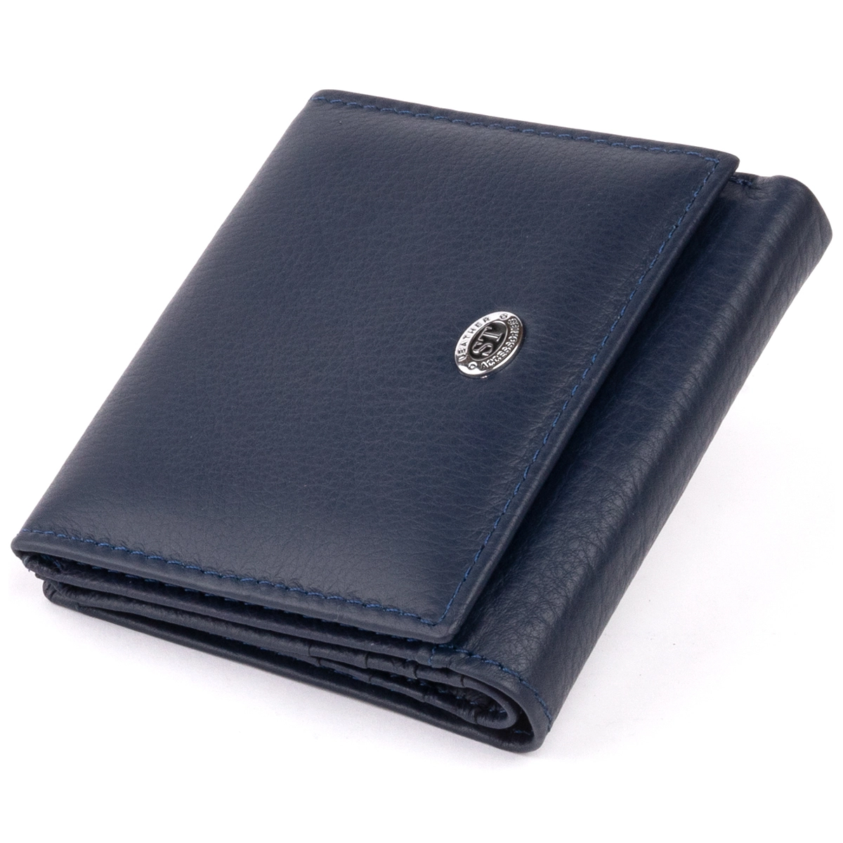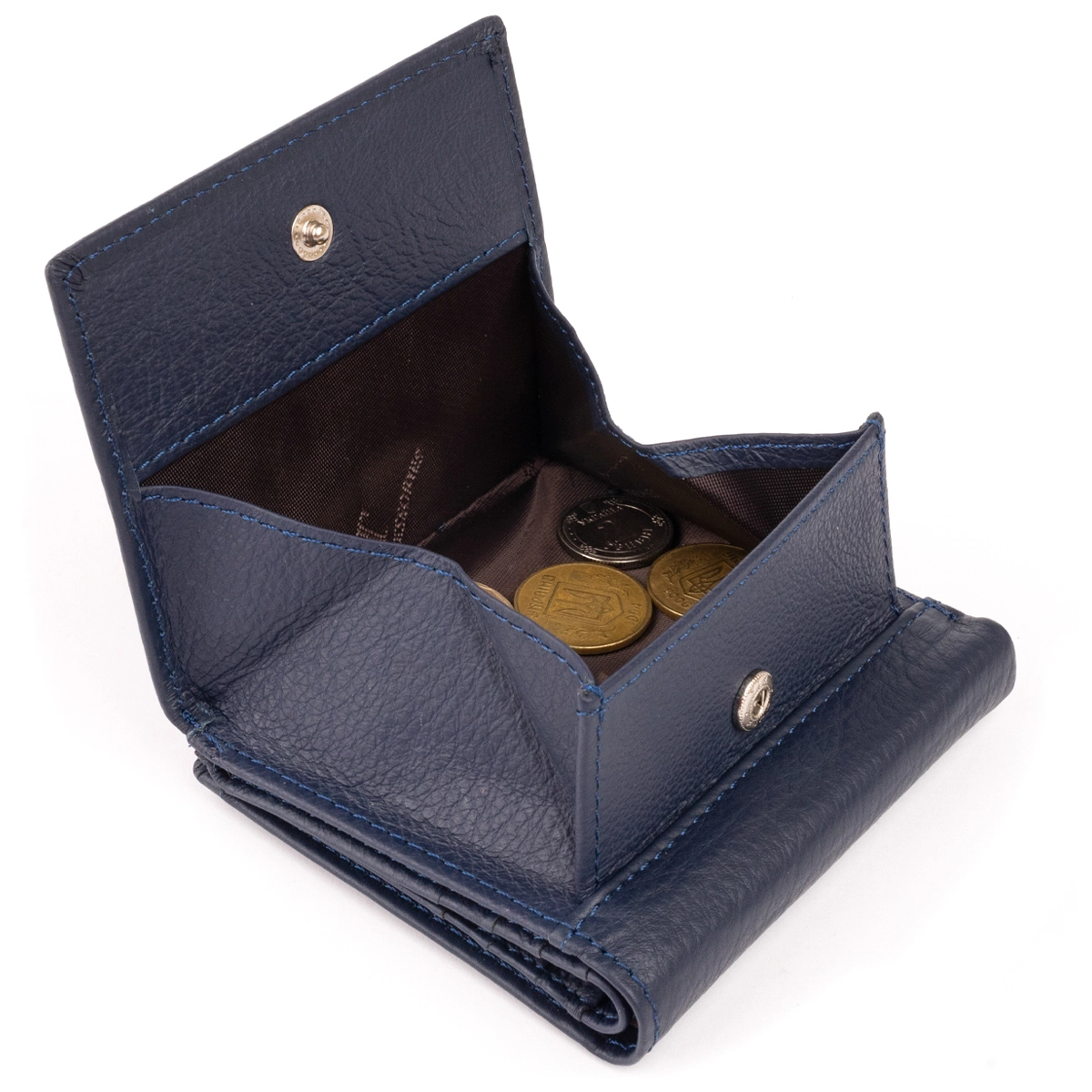 Кожаный женский кошелек компактного размера. Синий цвет кошелька