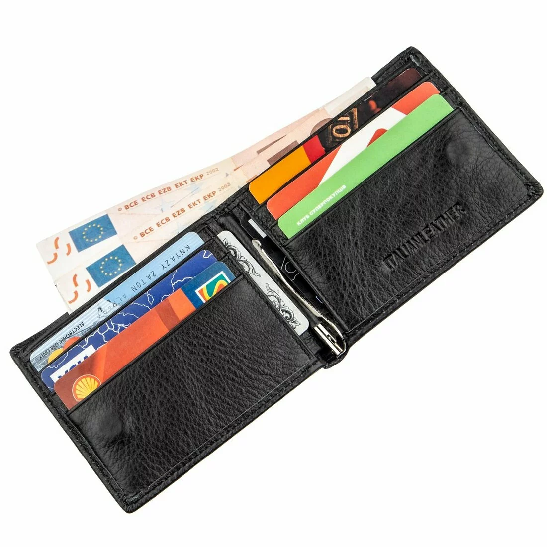 Компактный, но очень практичный и функциональный мужской кошелек из высококачественной натуральной кожи черного цвета. Имеет сдержанный и не вызывающий дизайн. Прекрасно помещается в карман любого размера, также отлично влезет в небольшую мужскую сумочку, борсетку или сумку на пояс. Монетница расположена на тыльной стороне бумажника и закрывается на молнию, что очень удобно и практично. Ну и прекрасным дополнением ко всему есть зажим для купюр, что очень популярно в наши дни. Такой бумажник станет отличной покупкой для любого мужчины, ну и несомненно просто замечательным подарком. Упаковано данное изделие в плотную картонную.