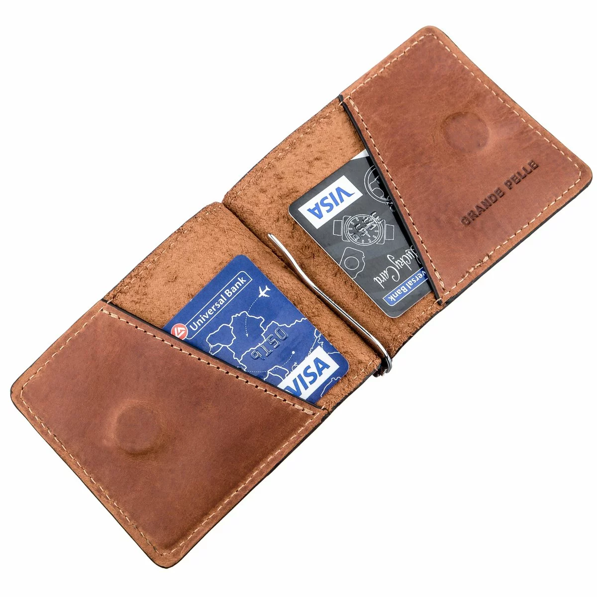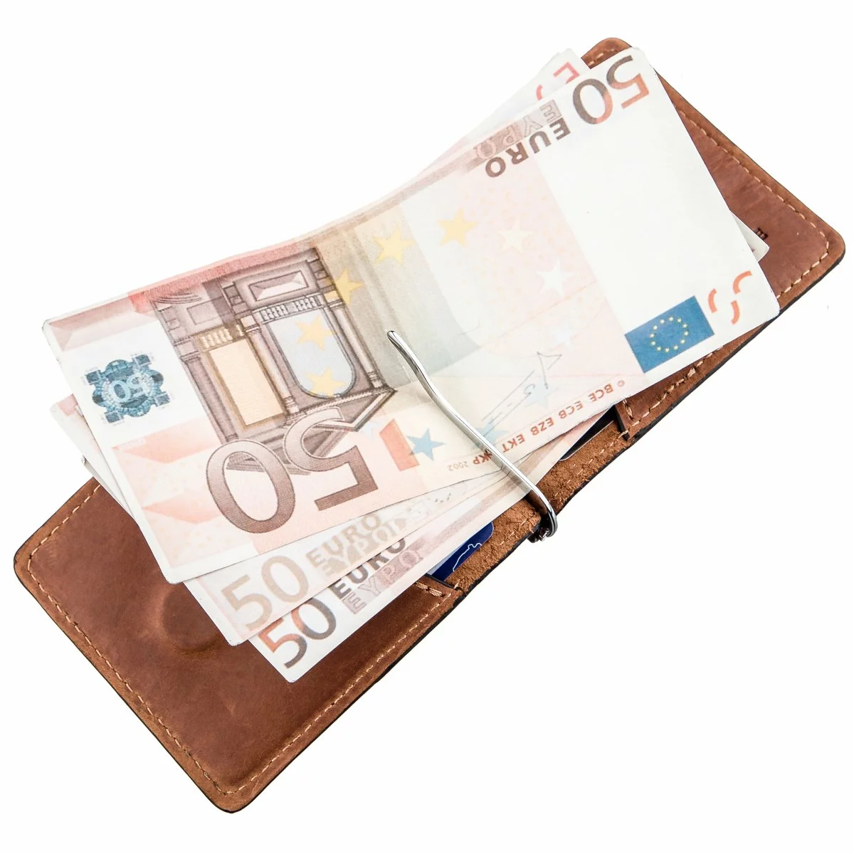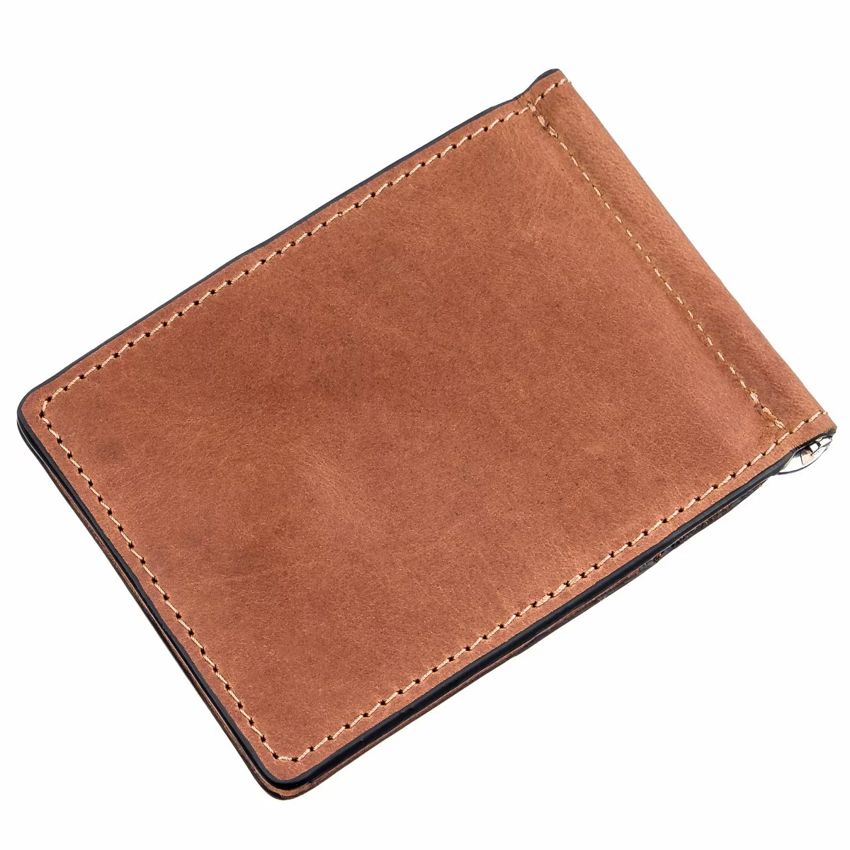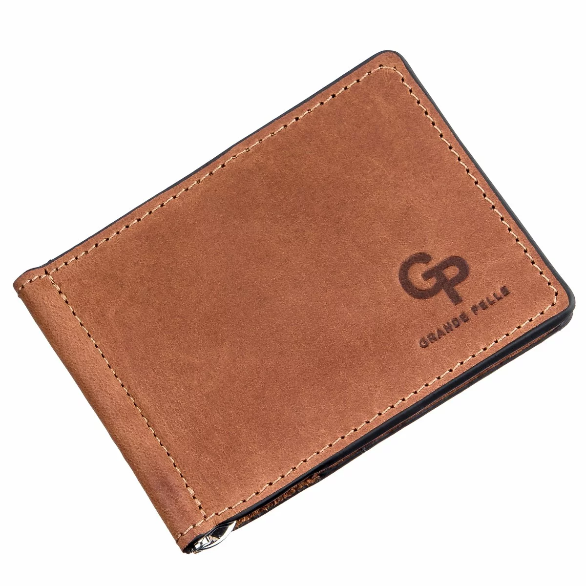 Кожаный зажим для купюр с тисненным логотипом бренда на лицевой