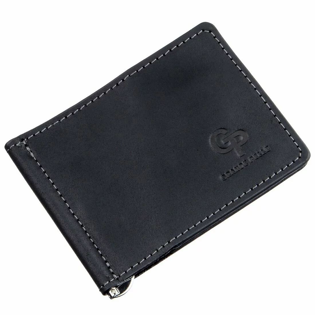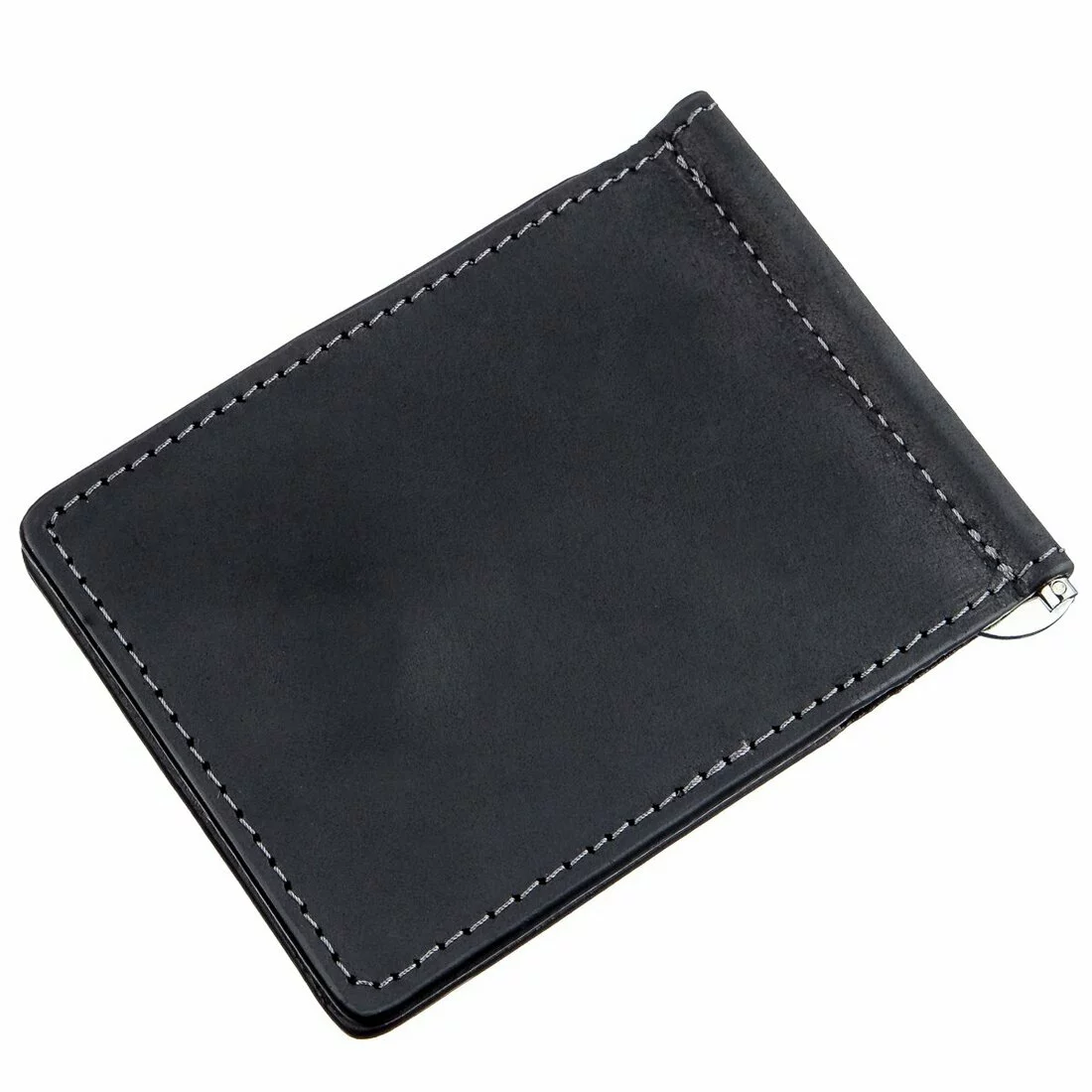Черный компактный зажим из итальянской натуральной кожи высочайшего