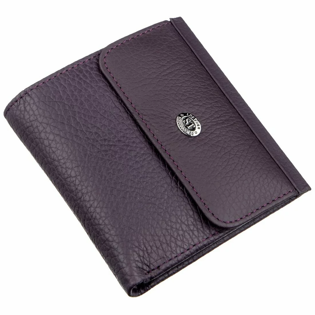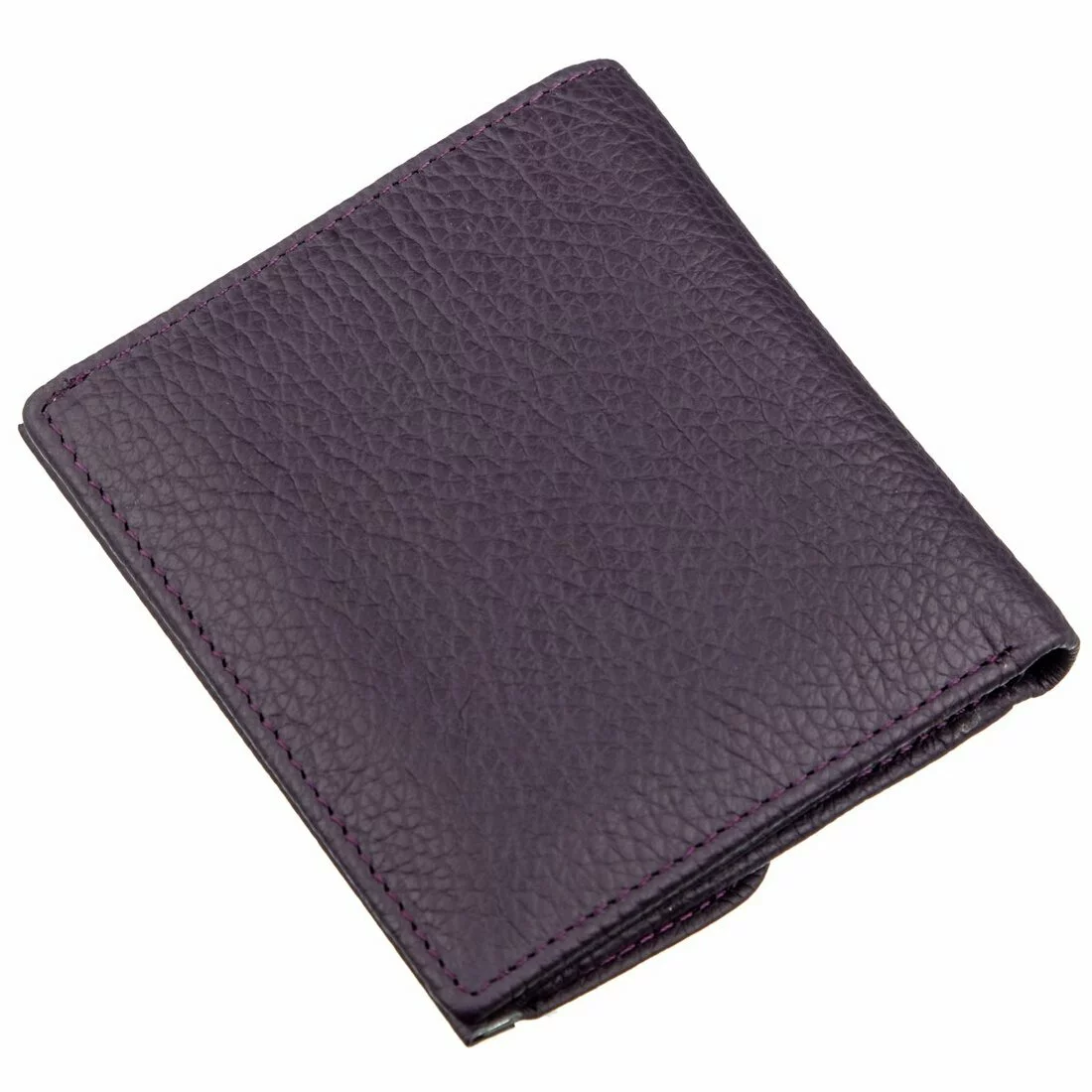 Небольшое портмоне для женщин с прекрасным чувством стиля и отличным вкусом. Выполнено оно из добротной высококачественной кожи с зернистой фактурой. Цвет изделия очень красивый и необычный, а именно – темно-фиолетовый. Данный аксессуар с легкостью помещается в любой дамской сумочке или в кармане. Внутри расположено два основных отделения для купюр, отделение под молнией для особых ценностей, карманы для карточек, визиток, также отделение для фото. На внешней стороне находится монетница, с перегородкой для сортировки монет. Данный кошелек может стать превосходным подарком для близкого человека. Упаковано портмоне в белую картонную коробку.