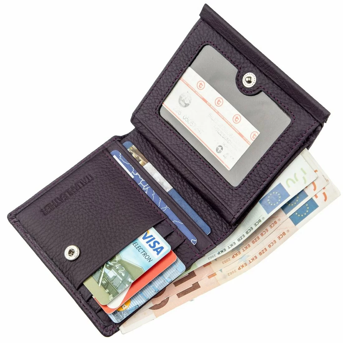 - женское портмоне из натуральной кожи на кнопке;