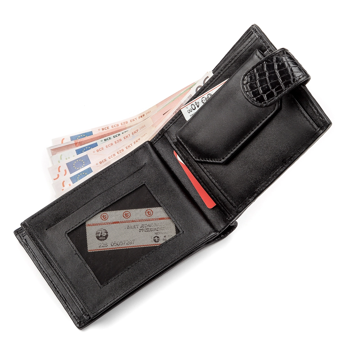 Кошелек из натуральной кожи крокодила, фактурной и приятной на ощупь. Аксессуар обшит качественной гладкой кожей в тон кошелька. Изделия из кожи крокодила всегда считались большой роскошью, так как в мире не так уж много компаний, которые занимаются выделкой такой кожи, поскольку этот процесс действительно чрезвычайно трудоемкий. Экзотические изделия из крокодила действительно неповторимы так, как не найти двух одинаковых крокодилов и невозможно создать идентичные вещи. Каждое изделие из этого материала обладает своей уникальной структурой и узором. Изделия из кожи крокодила будут отличными подарками для Вас и Ваших близких.