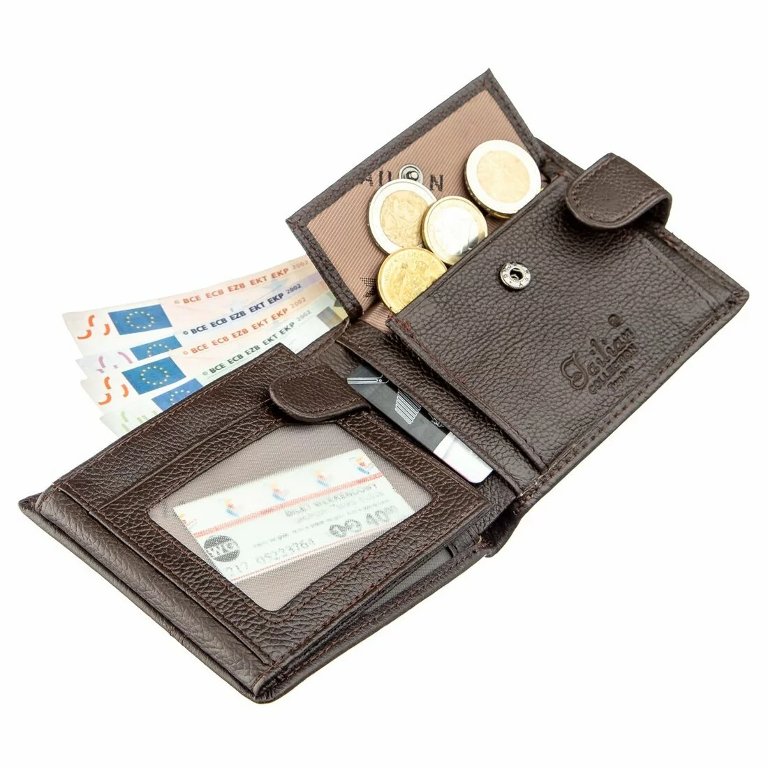 Модель кошелька с монетницей на кнопке и тремя прозрачными ячейками