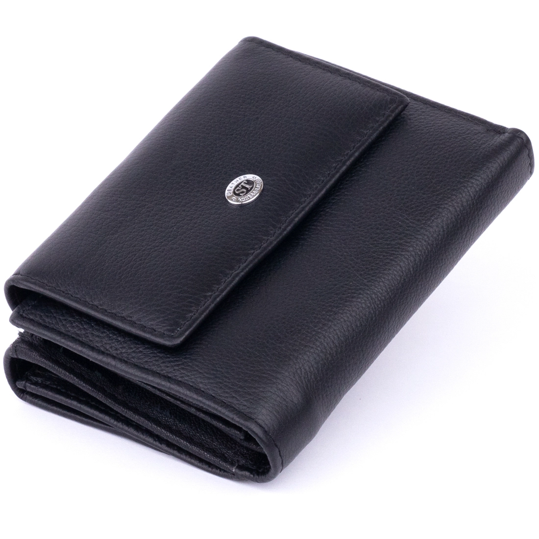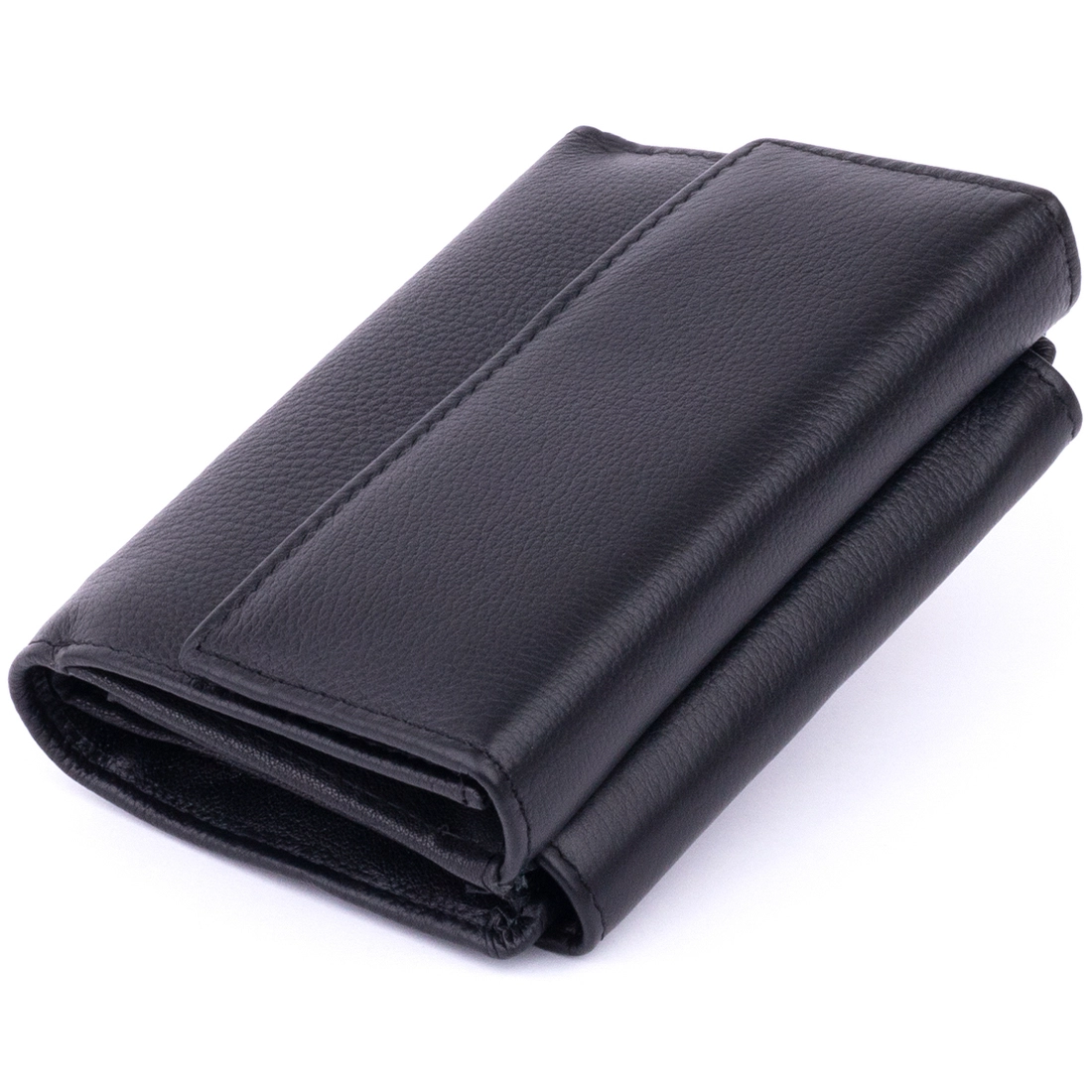 Горизонтальный кошелек на кнопках классического черного цвета.