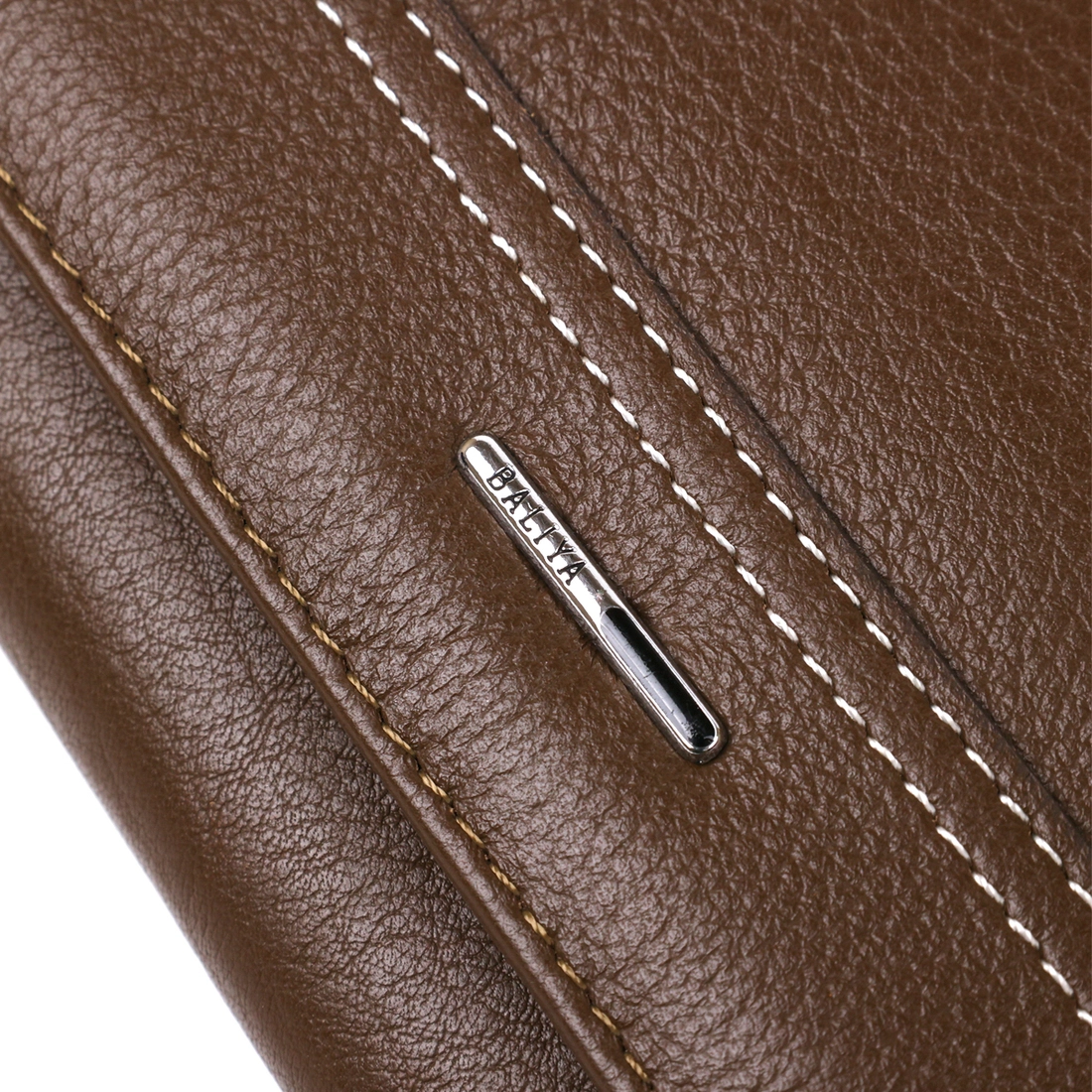 тонкая металлическая полоска с надписью бренда. Не броский кошелек