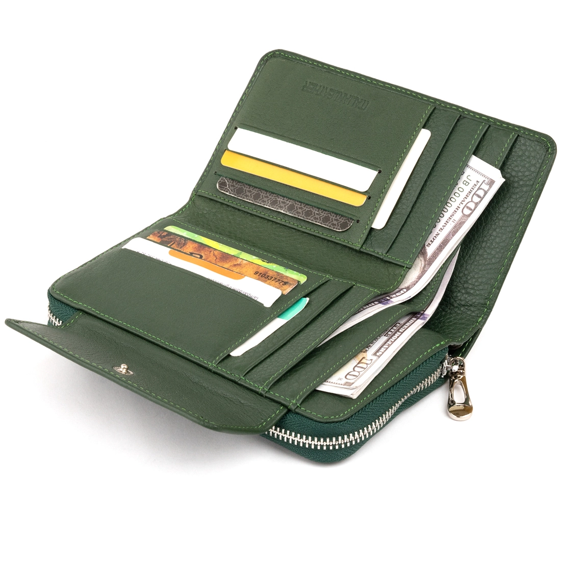 Практичный кошелек в благоприятном для денег зеленом цвете. Мы