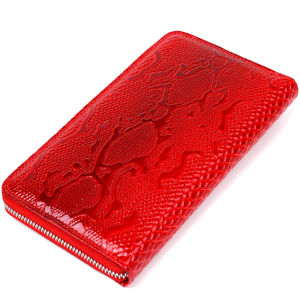 Лакированный женский кошелек-клатч, из натуральной фактурной кожи под рептилию. Такой кошелек очень вместительный, в него легко помещается мобильный телефон, документы и другие мелочи. Отличная идея для подарка, которая не оставит равнодушной ни одну женщину.