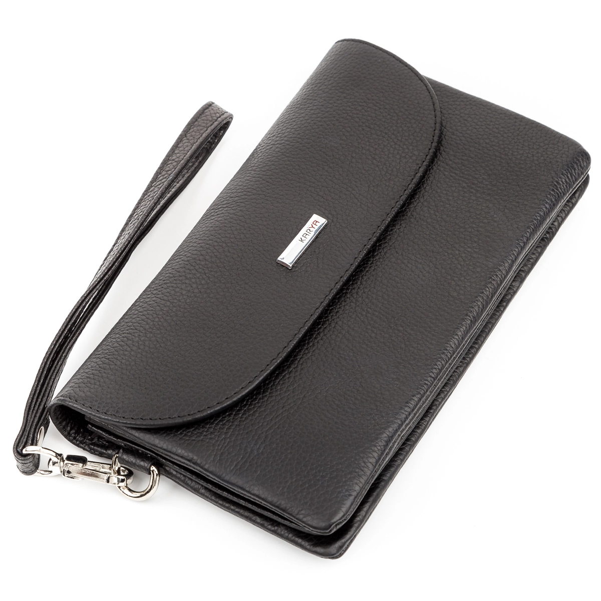 Вместительный женский кошелек-клатч, из натуральной фактурной