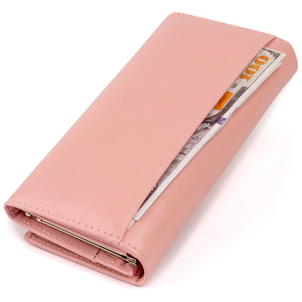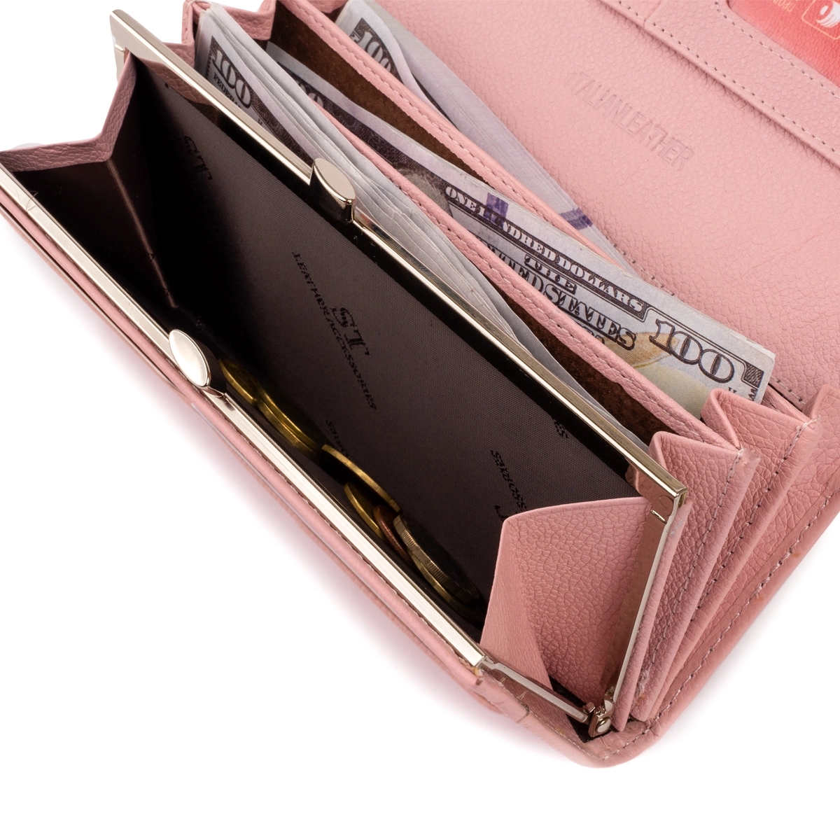 Удобный и вместительный кошелек нежного розового цвет. В изделие