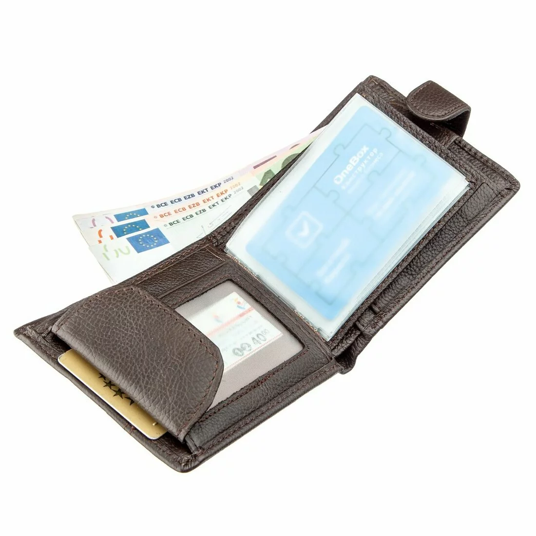 визитница, которая закрывается на хлястик с кнопкой. Внутри кошелек