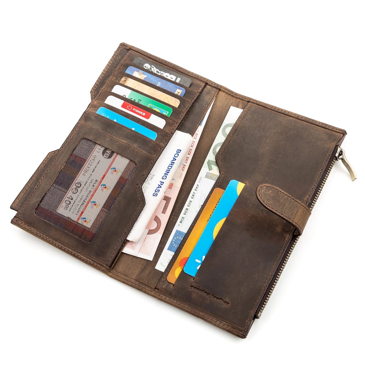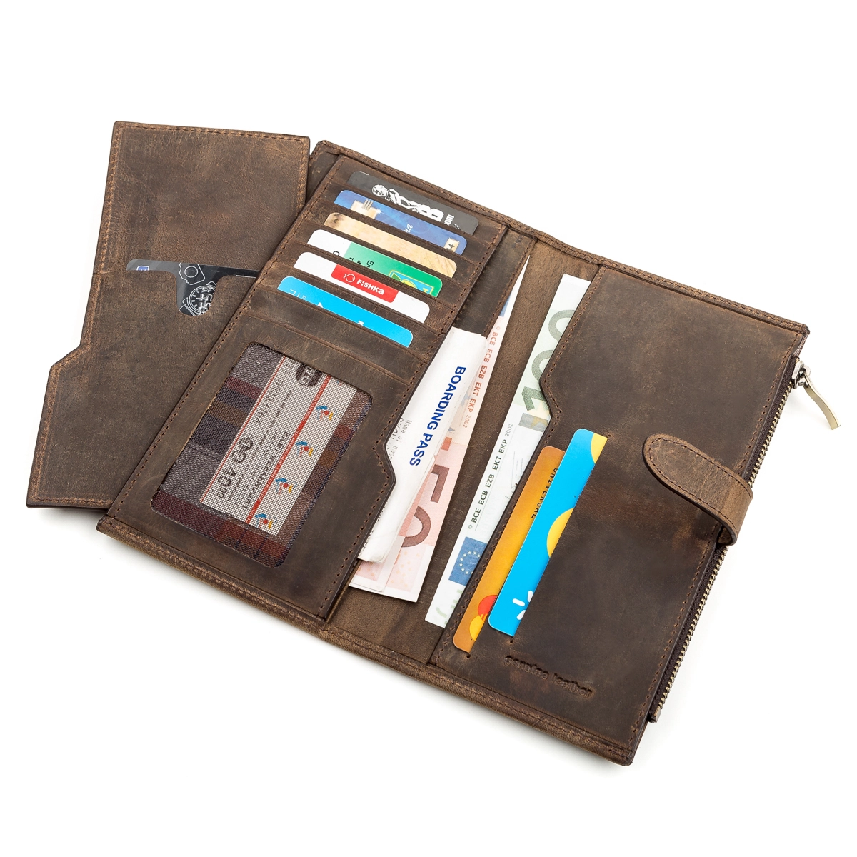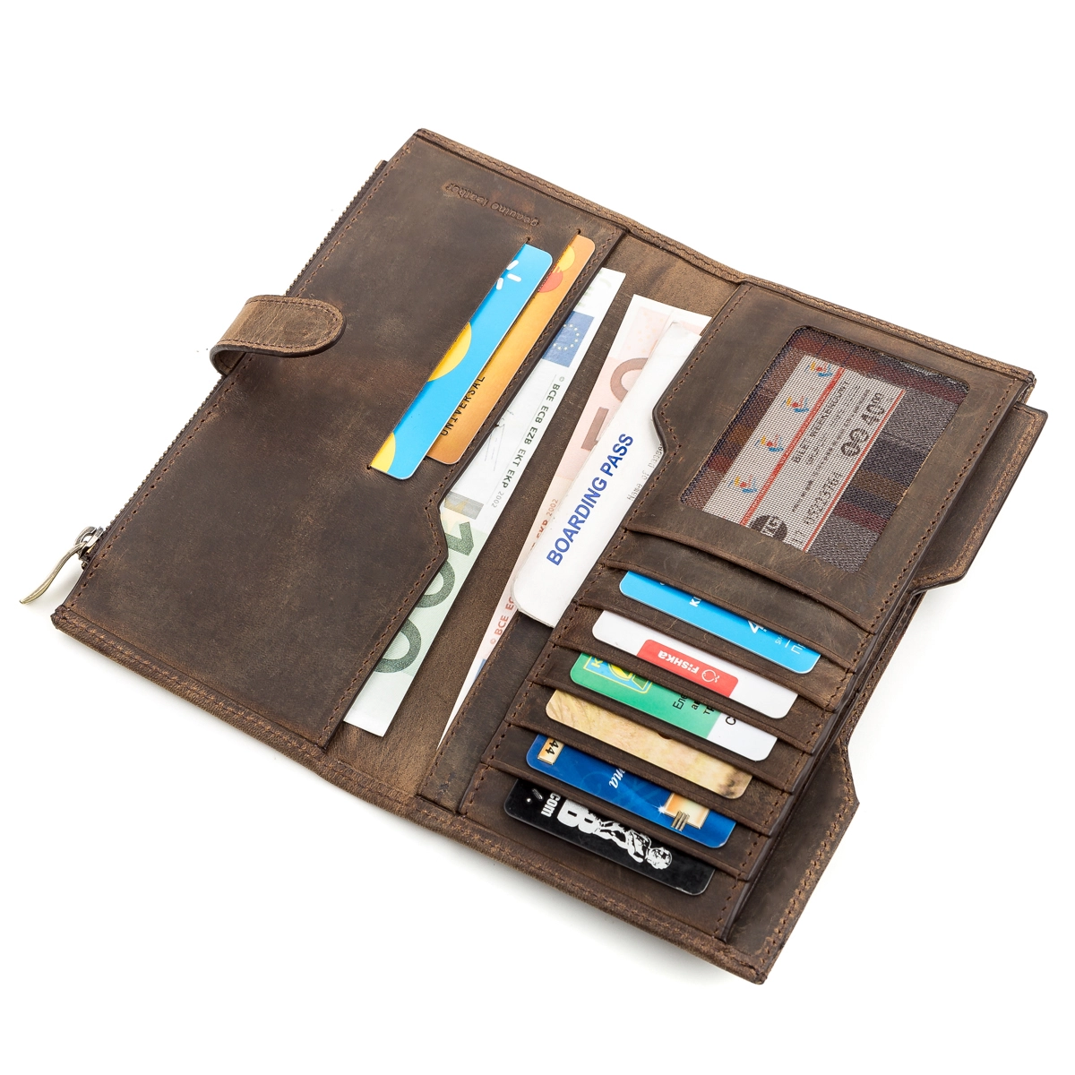 Функциональный вертикальный кошелек, из винтажной кожи, для