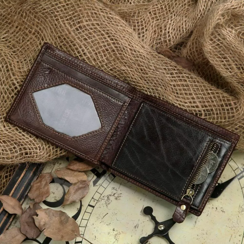 Великолепный мужской бумажник из натуральной кожи высокого качества. Аксессуар выполнен из натуральной, высококачественной кожи приятной на ощупь. Внутри: 2 отделения для банкнот, монетница на молнии, 4 отделения для кредиток и одно для фотографий. Благодаря высокому качеству служить изделие будет долго и при этом сохранит свой презентабельный внешний вид. Кошелек упакован в текстильный пылезащитный чехол белого цвета.