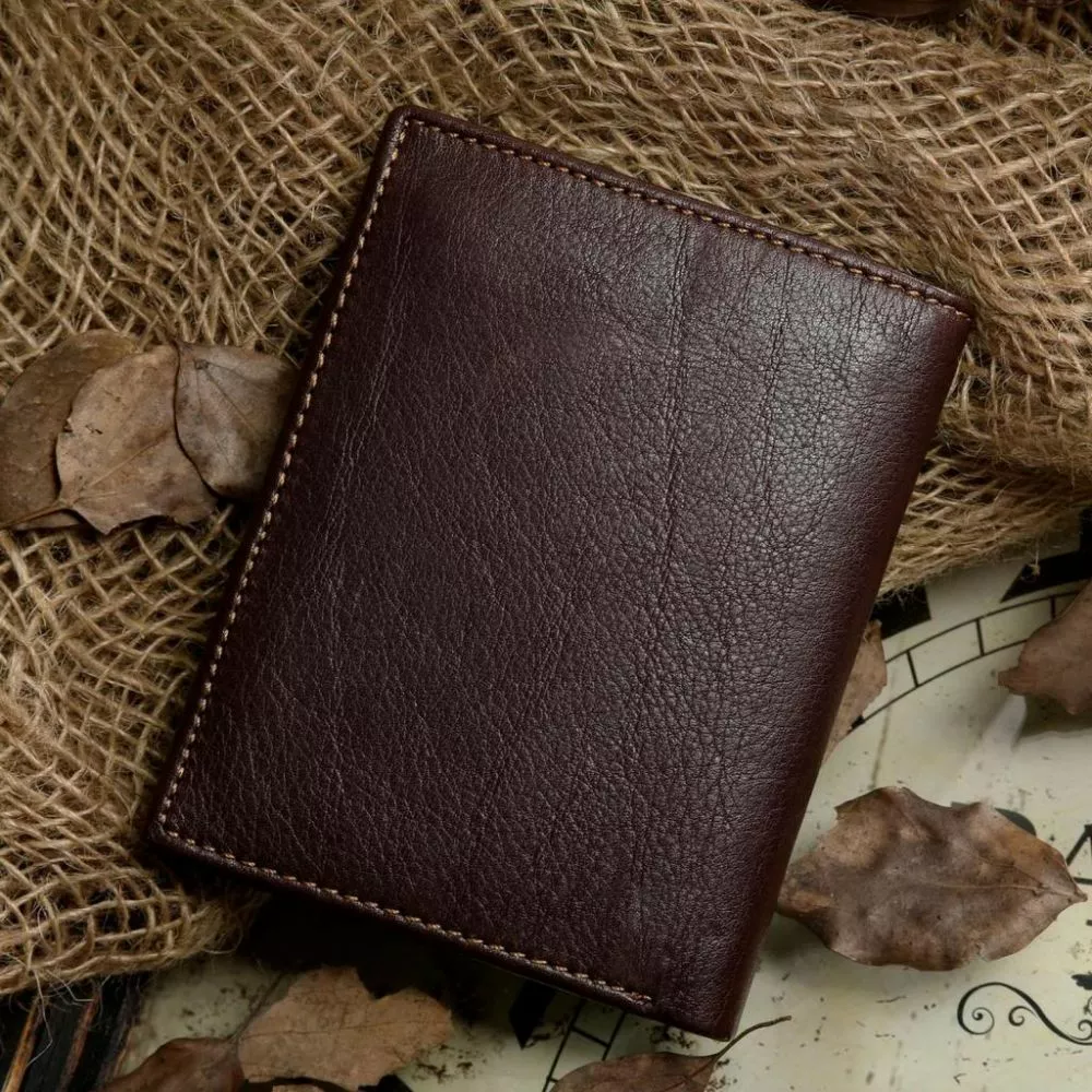 Шикарный мужской кошелек без лишнего декора. Бумажник изготовлен из натуральной, высококачественной кожи и пришит прочной нитью. Аксессуар упакован в текстильный пылезащитный чехол белого цвета.