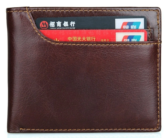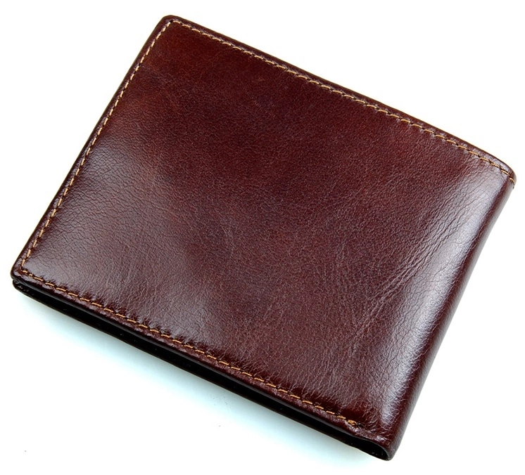 Тонкий мужской бумажник коричневого цвета. Аксессуар изготовлен из высококачественной натуральной кожи. Прошит кошелек прочной нитью светло-коричневого цвета. На лицевой стороне изделия находится накладной карман, в котором Вы найдете 3 отделения для пластиковых карточек. Отделение для монет в этом аксессуаре отсутствует. Кошелек упакован в текстильный пылезащитный чехол.