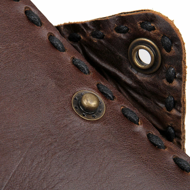 Эксклюзивный винтажный бумажник из натуральной кожи. Аксессуар закрывается при помощи кнопки. Цвет фурнитуры: латунь. Купюрник прошит толстой прочной нитью, которая также выступает элементом декора. Кошелек упакован в текстильный пылезащитный мешочек белого цвета.
