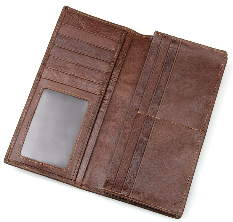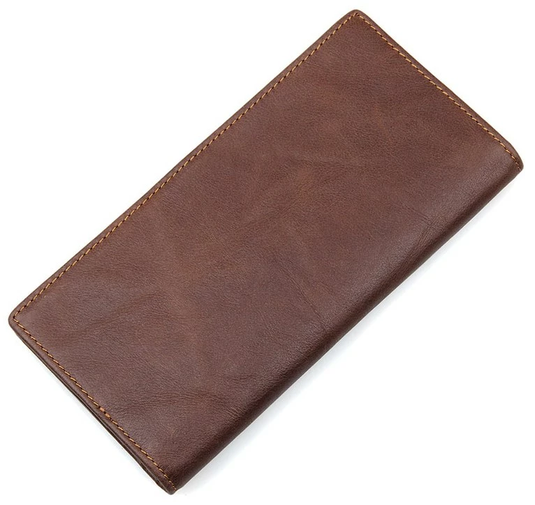 Стильное вертикальное мужское портмоне из натуральной кожи. Кошелек удобно держать в руке. Изделие аккуратно прошито сверхпрочной нитью. Банкноты в таком кошельке помещаются в развернутом состоянии. Бумажник упакован в текстильный пылезащитный чехол белого цвета.