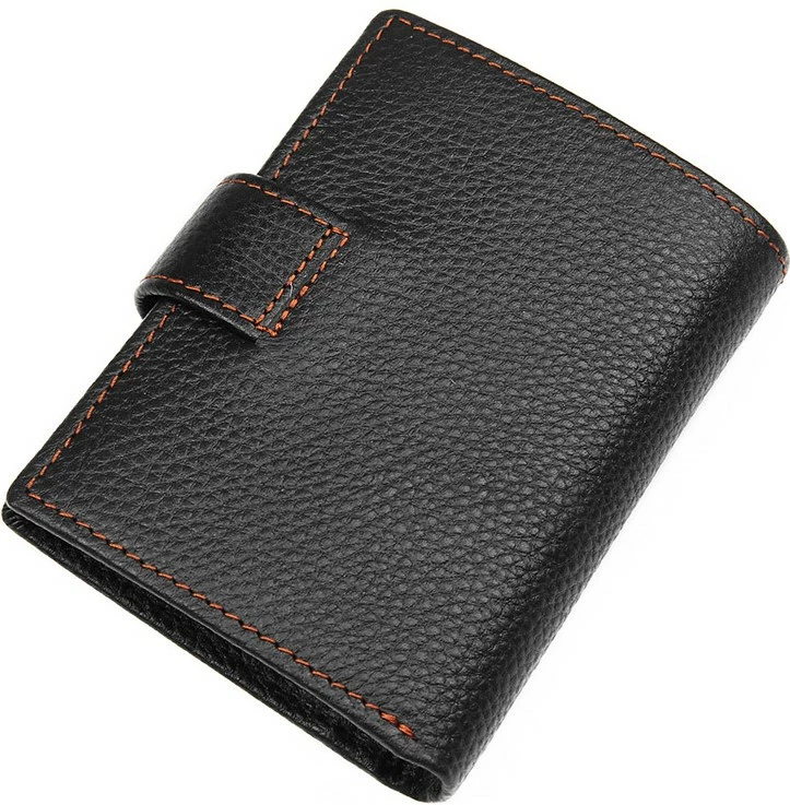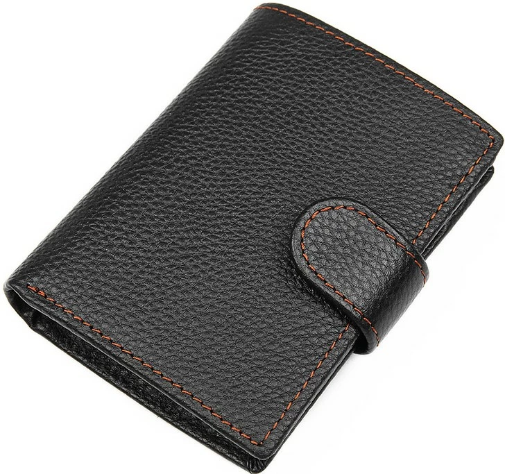 Вертикальный мужской кошелек черного цвета. Аксессуар выполнен из натуральной высококачественной фактурной кожи приятной на ощупь. Бумажник аккуратной прошит светло-коричневой нитью, что придает ему изюминку. Цвет фурнитуры: латунь. Изделие упаковано в текстильный пылезащитный мешочек белого цвета.