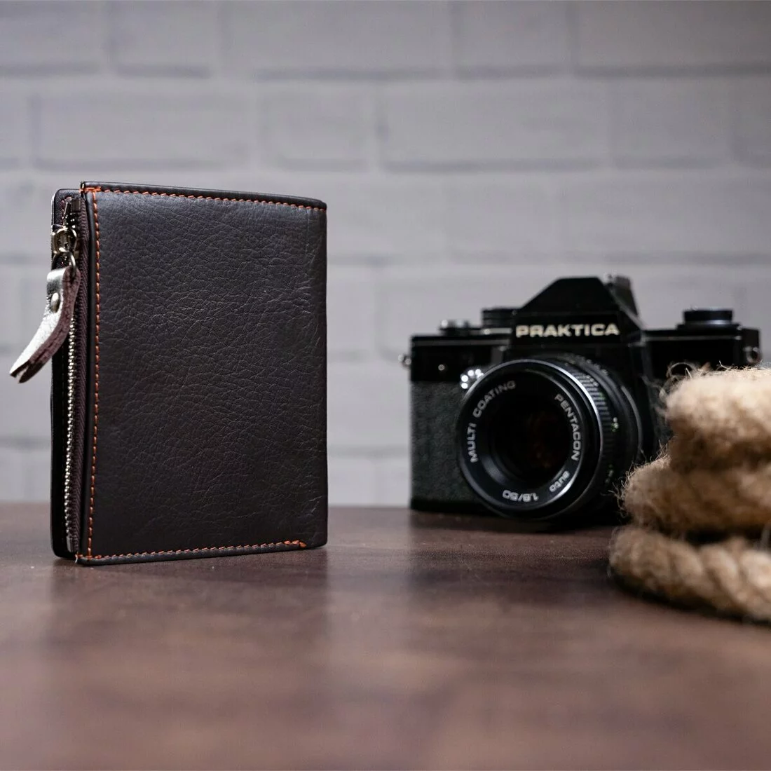 Аксессуар прошит по краям светло коричневой нитью. Модель