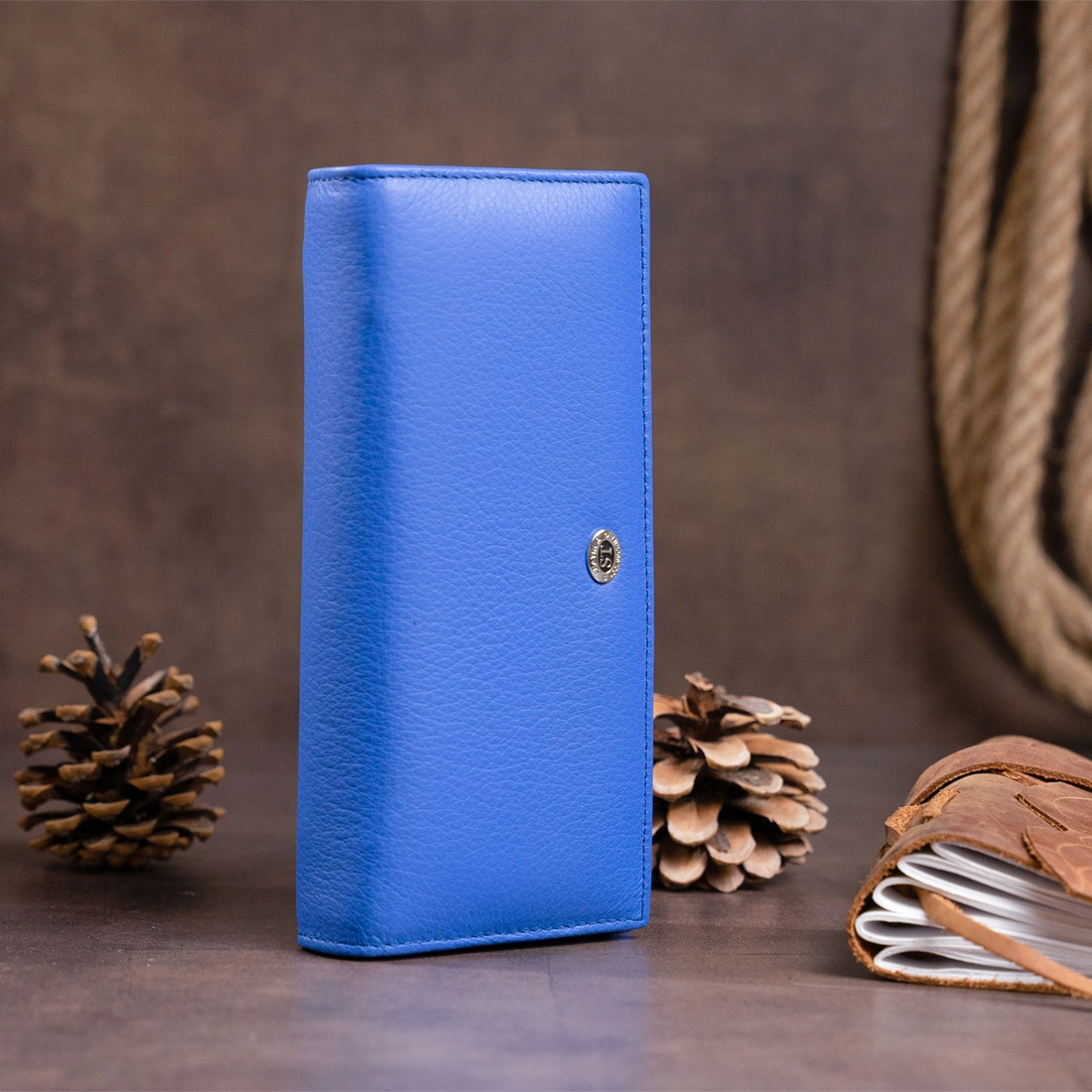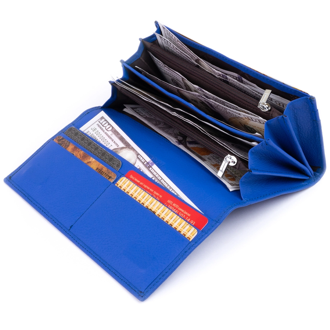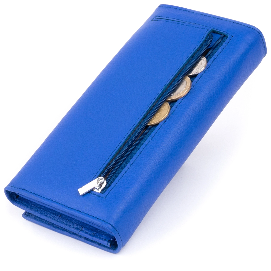 Горизонтальный кошелек насыщенного синего цвета на 4 отделения для