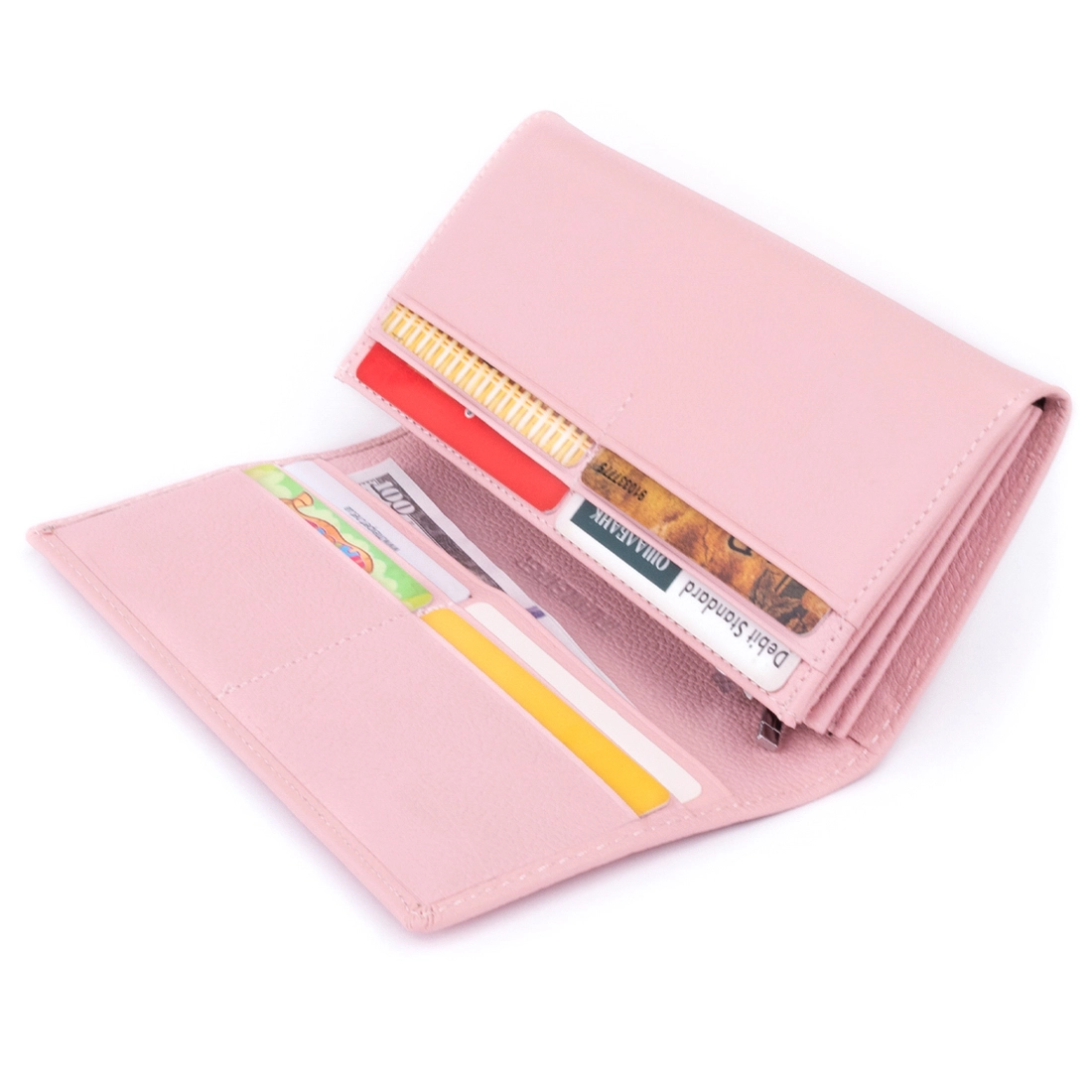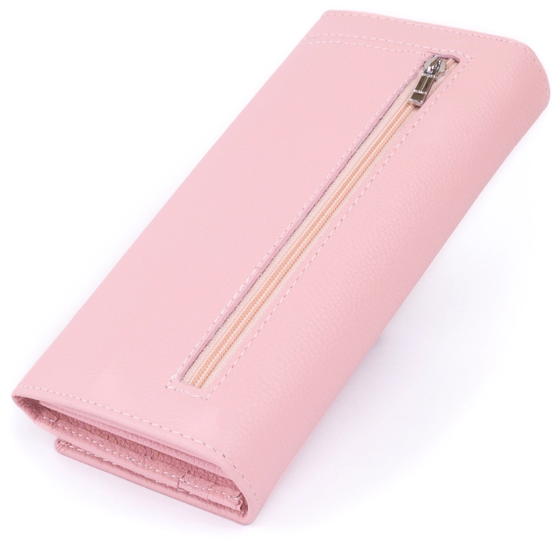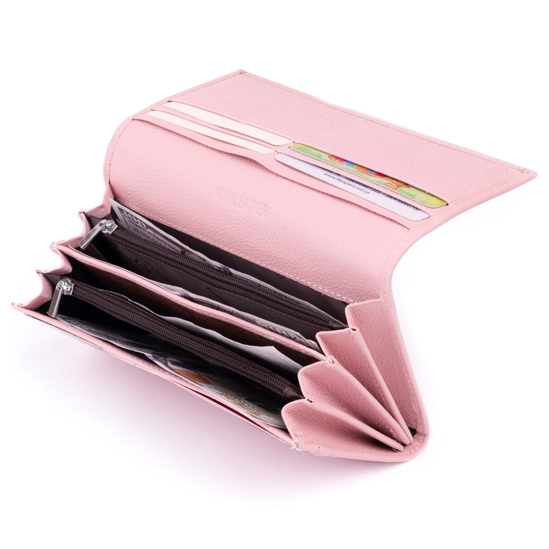 Розовый вместительный кошелек на 4 отделения для купюр и 2