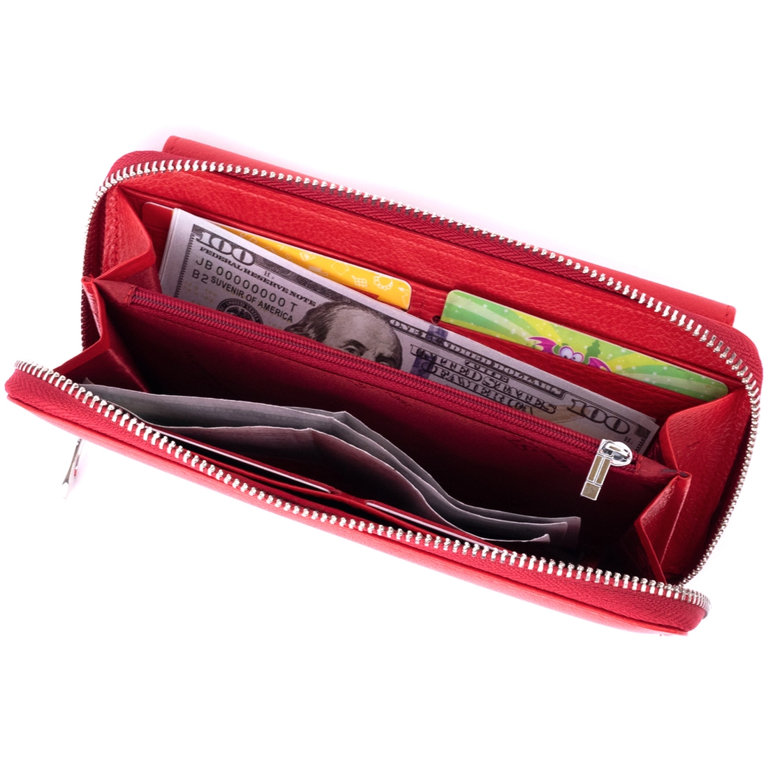 ярко-красного цвета, соответственно с таким кошельком вы точно