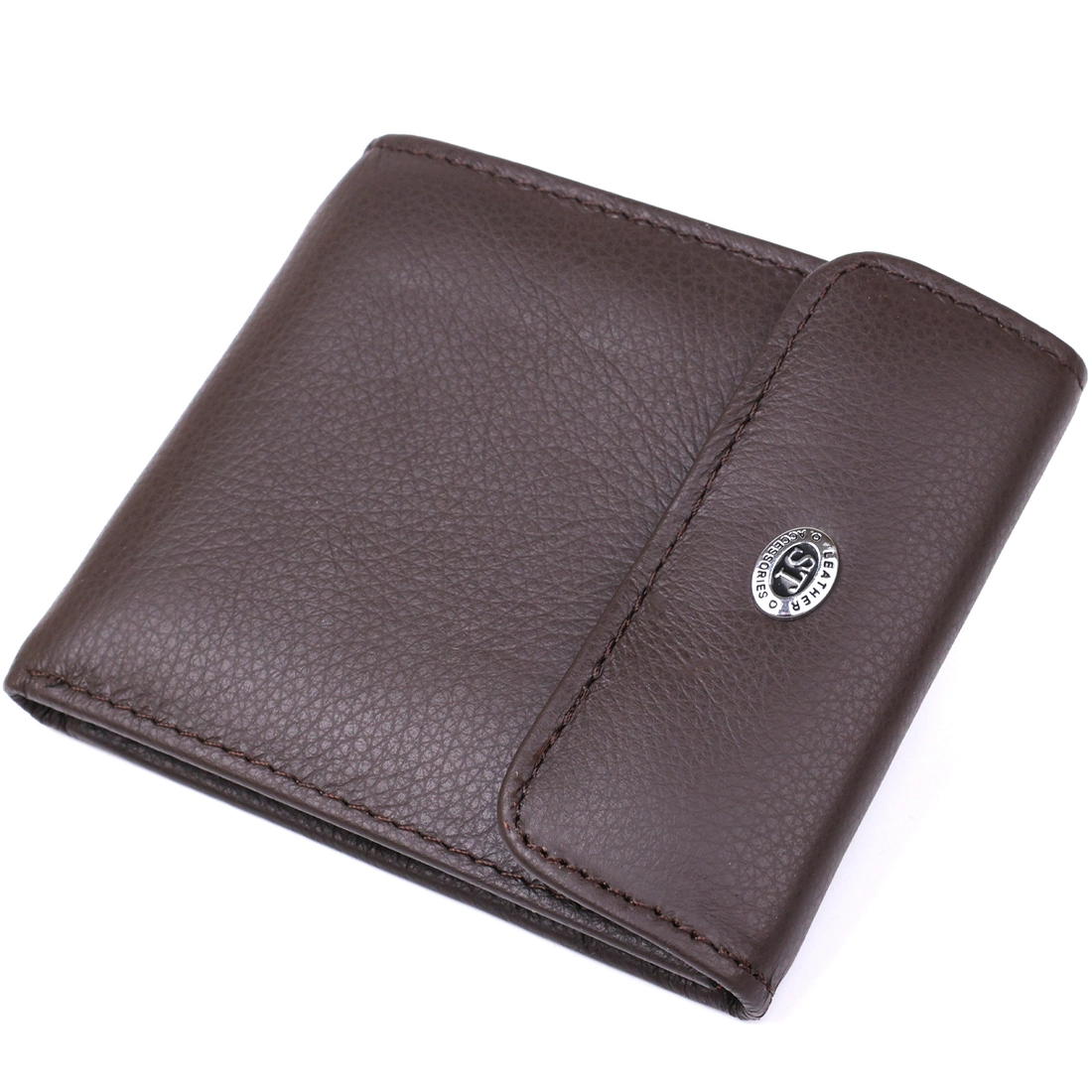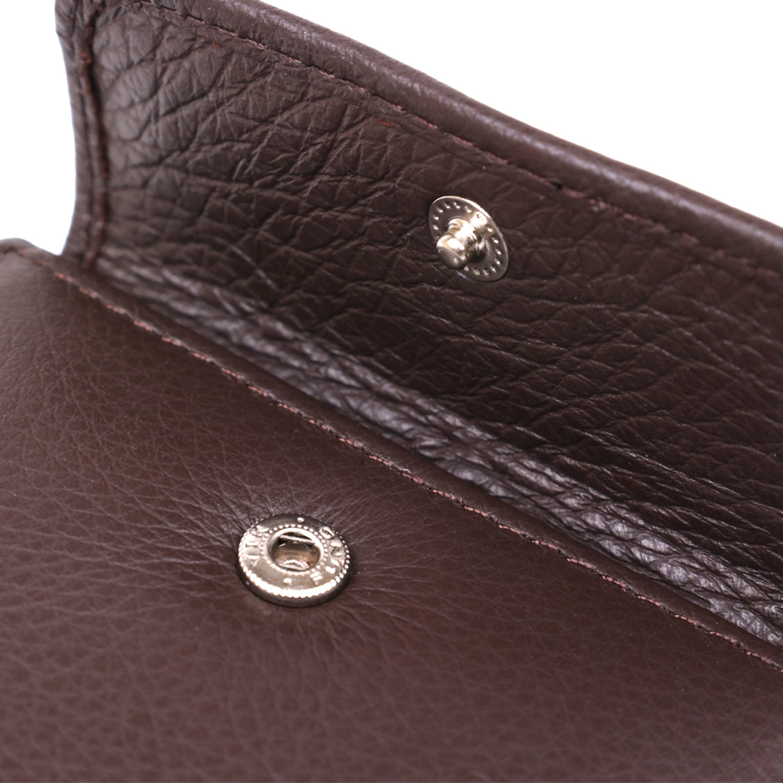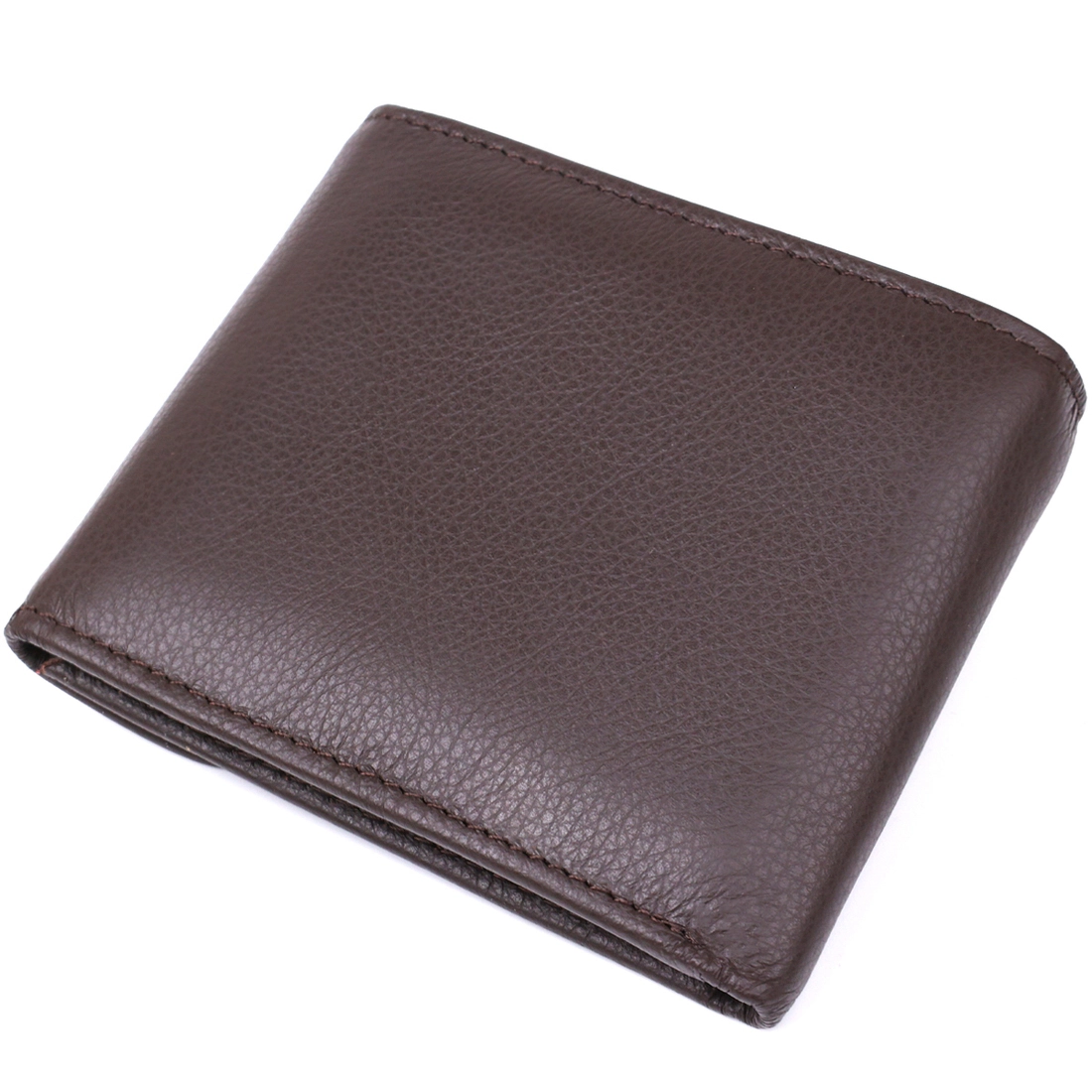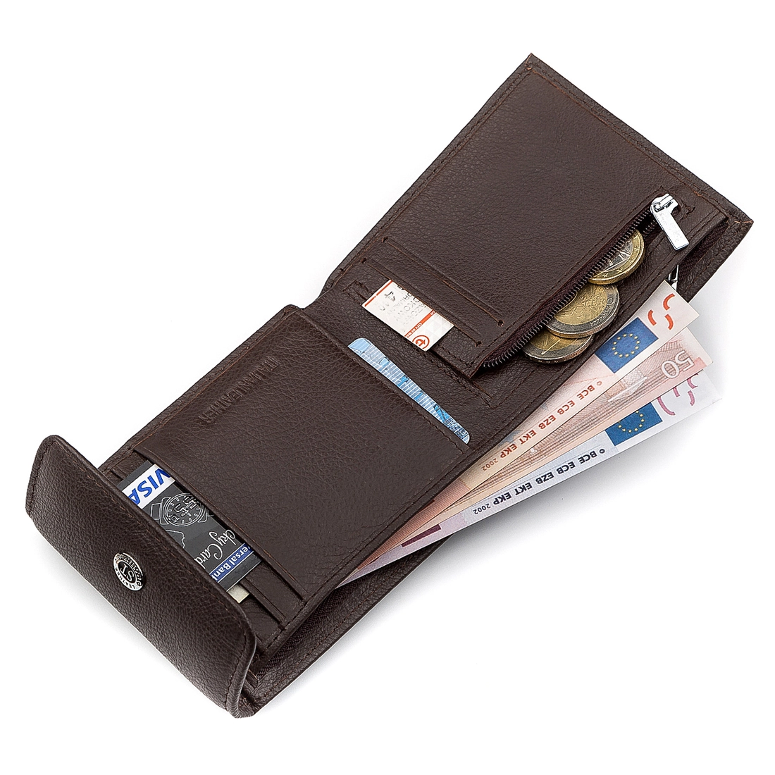 Портмоне для мужчин выполнено в сдержанном, педантичном стиле. Изделие оснащено кнопочной фиксацией. Благодаря внутреннему развороту, можно быстро достать содержимое. Кошелек оснащен двумя отделениями для купюрохранения, одно из которых закрывается молнией. В нем есть ячейки для хранения кредиток, визиток и прочих карт. Изнаночная сторона украшена фирменным значком и аккуратной кромочной строчкой. Изготовлен аксессуар из говяжьей и свиной кожи с текстильной подкладкой. Наш сайт bag24.com.ua позволяет приобрести аксессуар с возможностью оформления доставки по территории всей страны.