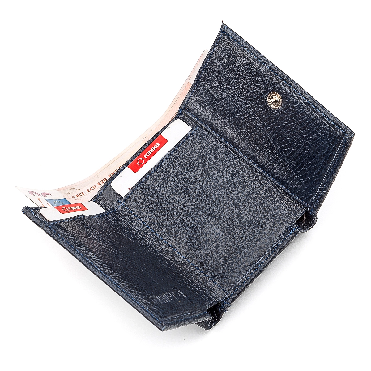 замка служит крепкая кнопка, а внутри кошелька можно увидеть
