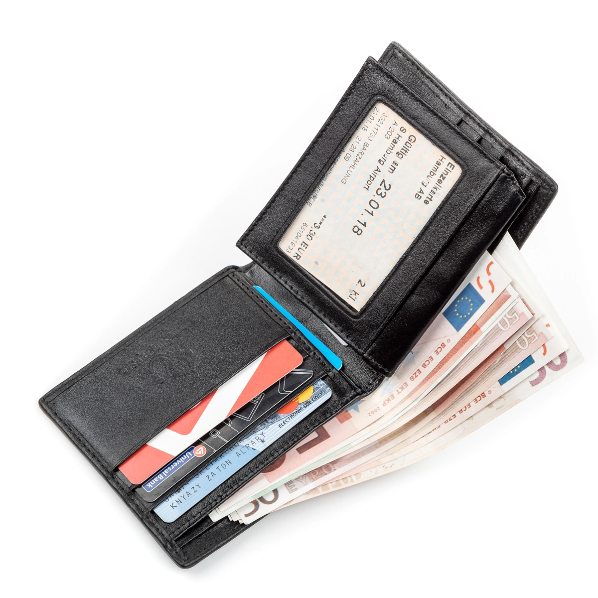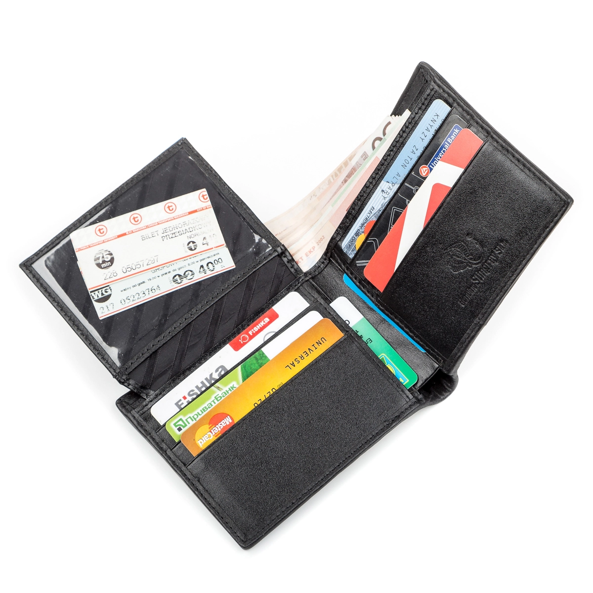 - 8 ячеек для кредитных карточек (две из них под прозрачной
