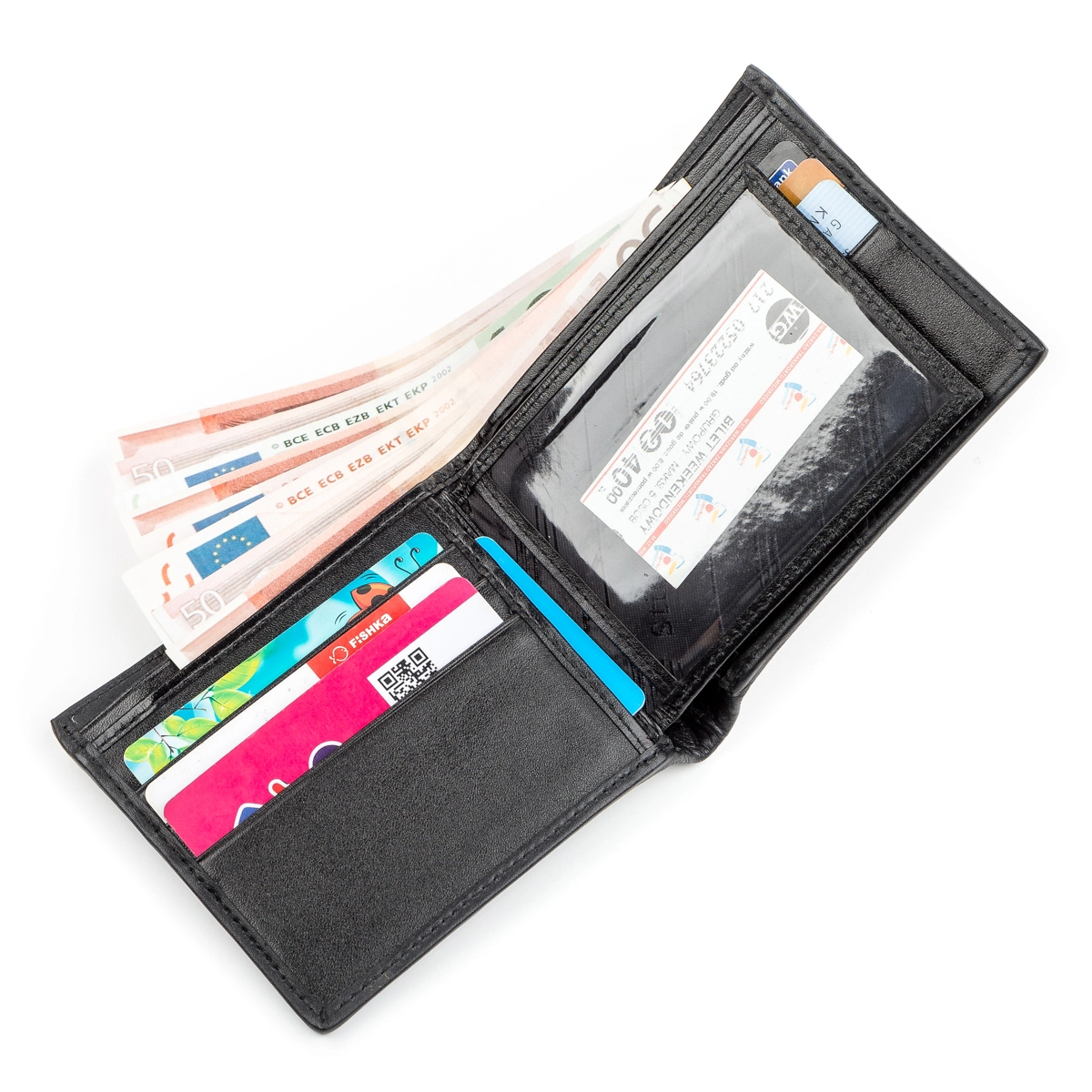 - 8 ячеек для кредитных карточек (две из них под прозрачной
