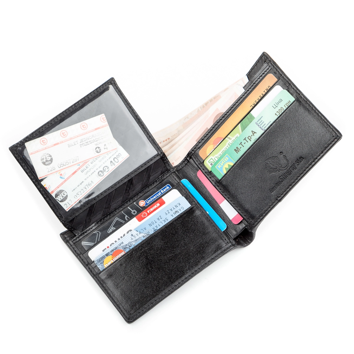 - 8 ячеек для кредитных карточек (две из них под прозрачной