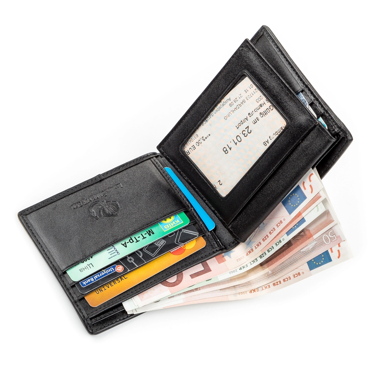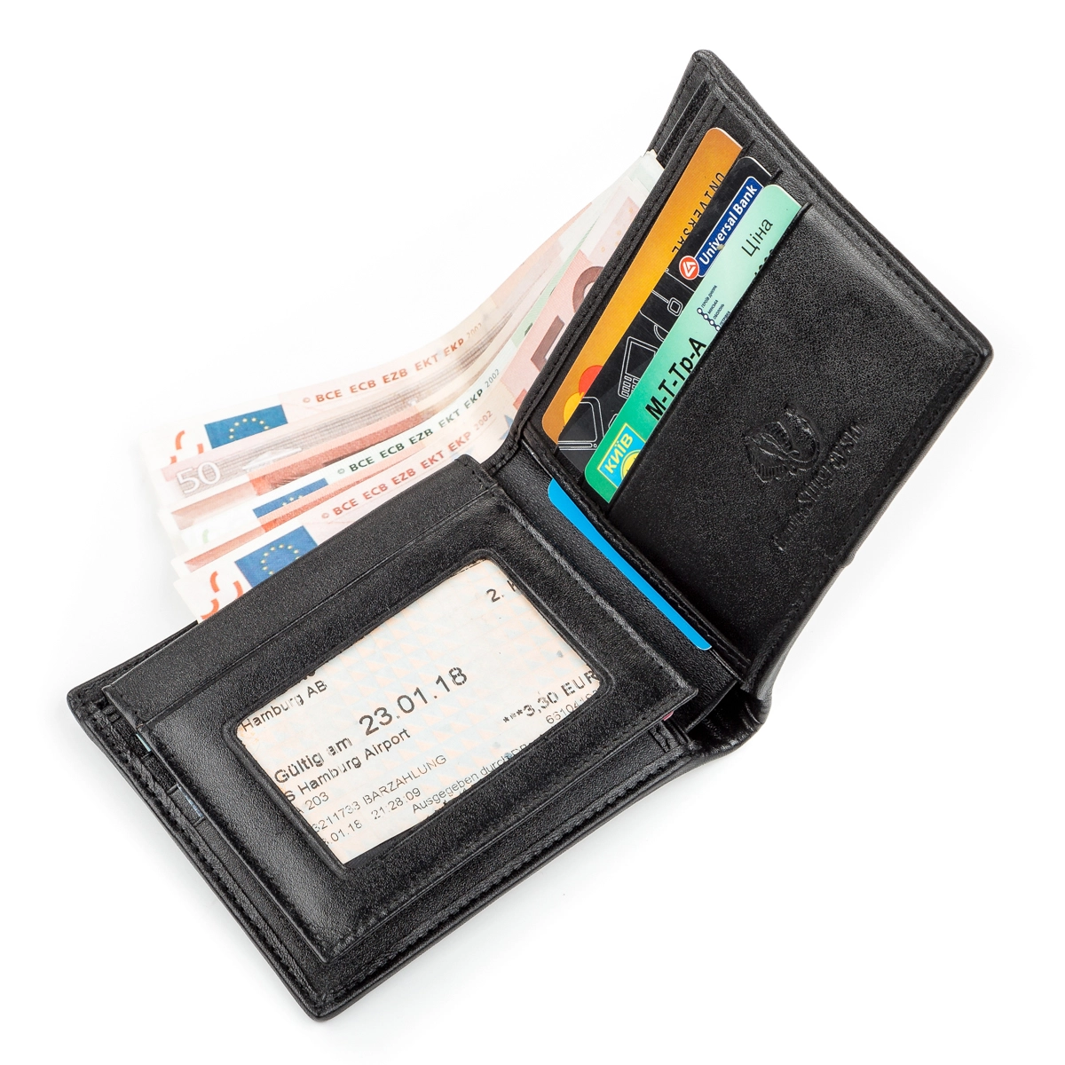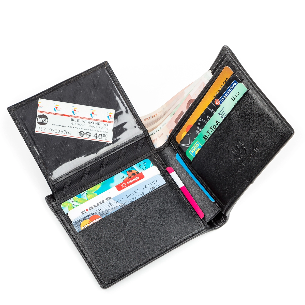 - 8 ячеек для кредитных карточек (две из них под прозрачной