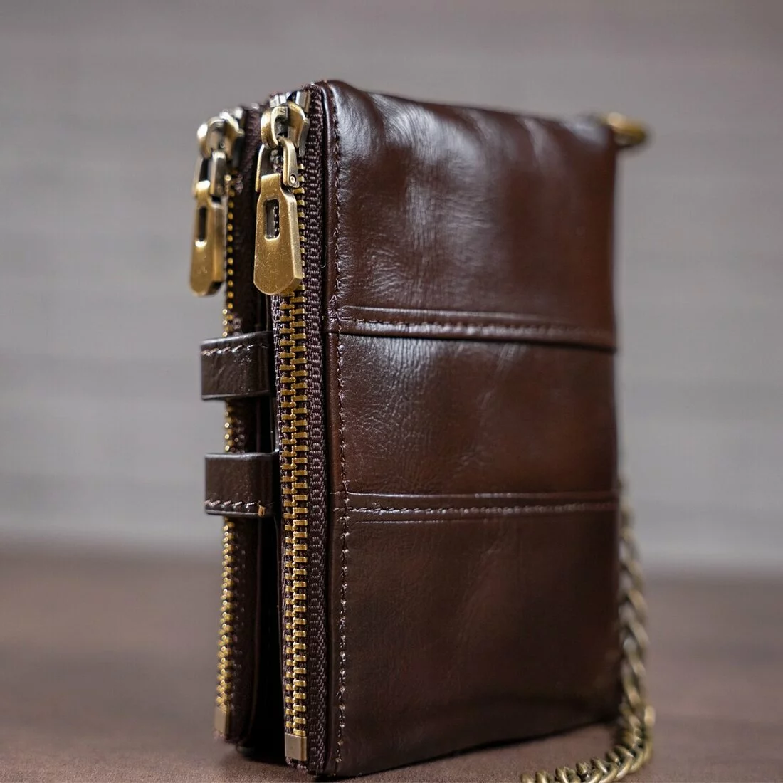 Уникальной особенностью такого кошелька является то, что вы сами можете регулировать объем заполнености кошелька. В аксессуаре 2 кнопочки. Огромный функционал впечатлит любого клиента. Кошелек совсем не прихотлив в использовании. И отлично носится годами. С таким функциональным кошельком вы точно ничего не забудете. Может быть прекрасным подарком для близкого человека.