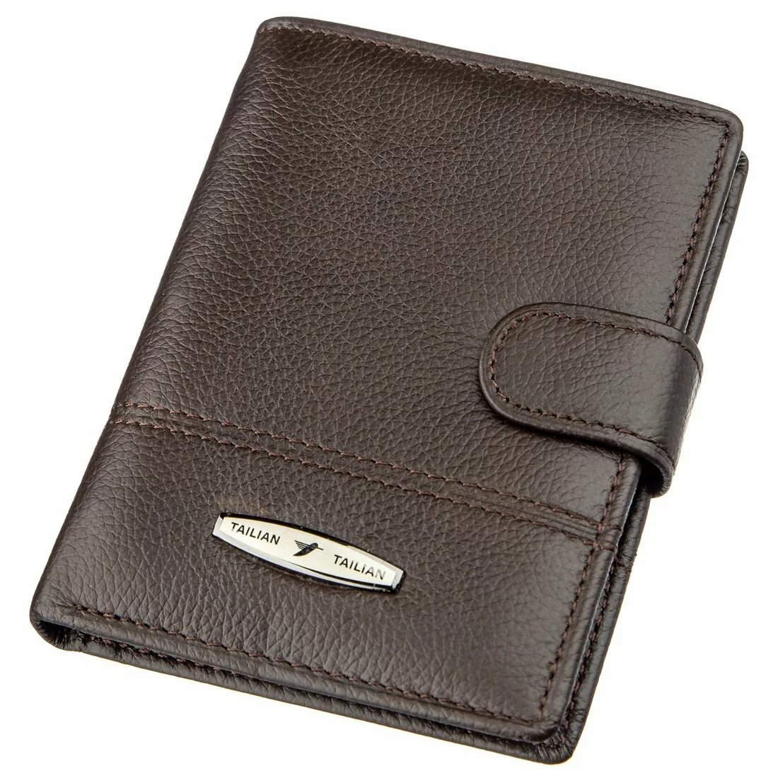 Вертикальный кожаный мужской кошелек из натуральной кожи. Модель
