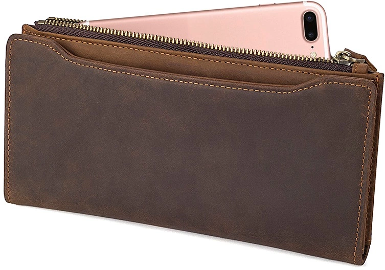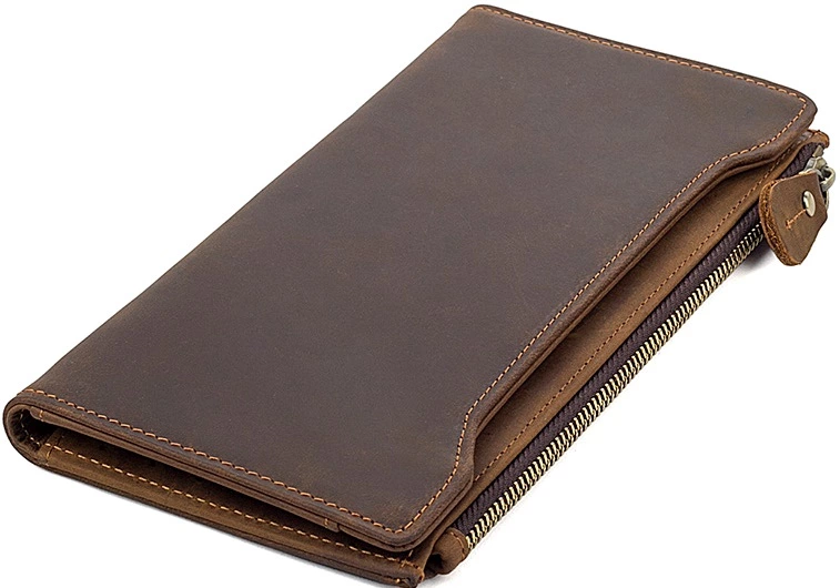 Стильный кошелек из высококачественной винтажной кожи, такая кожа отличается неоднородной фактурой и потертостями, которые придают ей уникальный и неповторимый стиль. Кошелек надежно прошит коричневой нитью. Очень красивый и качественный аксессуар, который подойдет как женщине, так и мужчине.