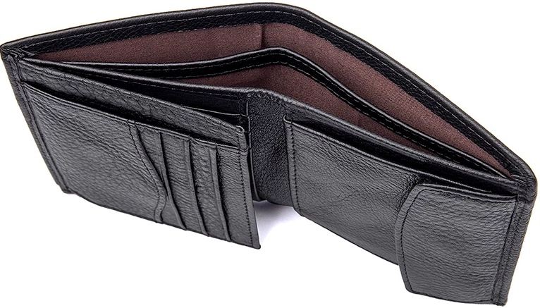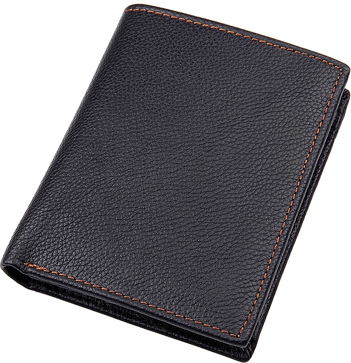 Стильный мужской кожаный бумажник черного цвета. Аксессуар