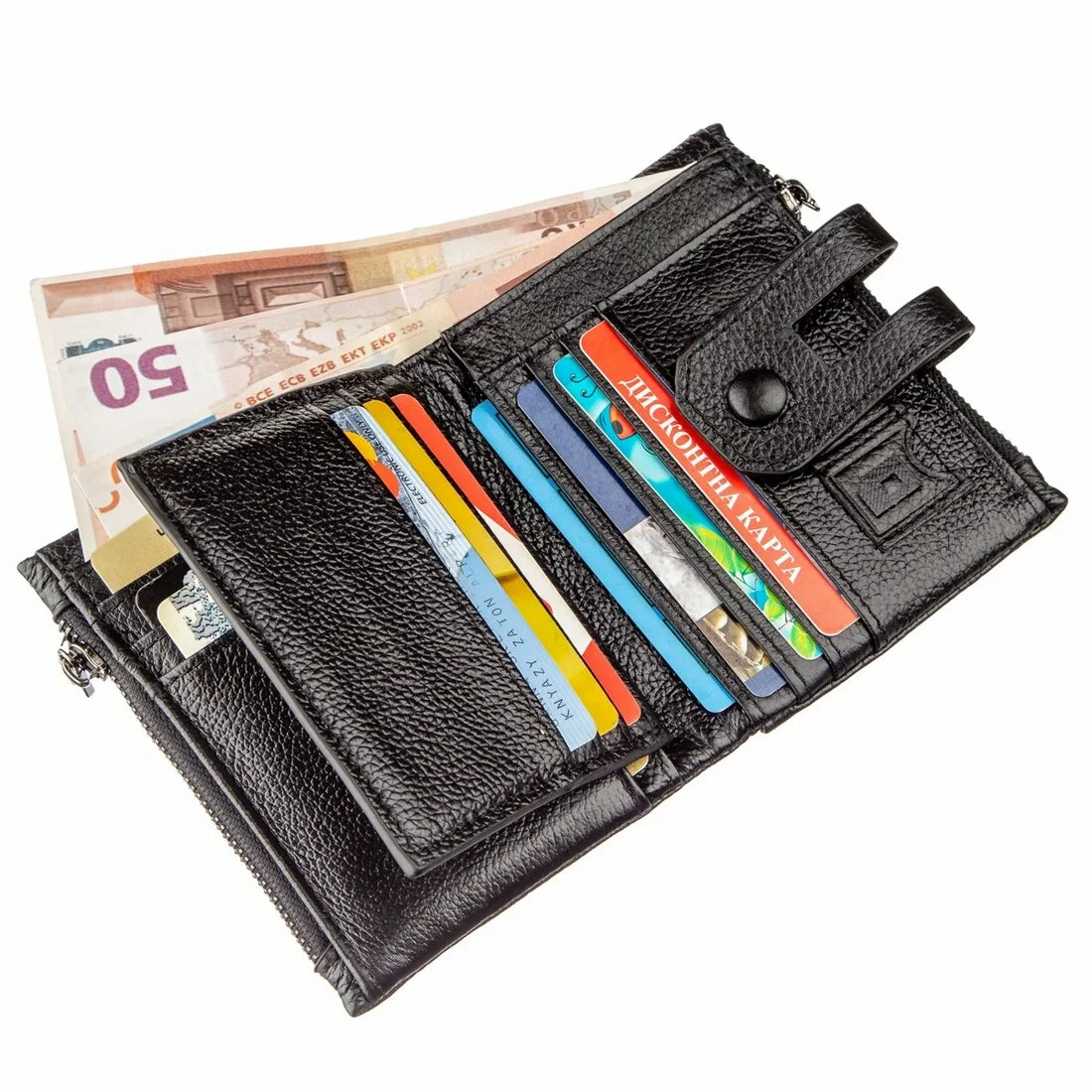 Многофункциональный кошелек унисекс. Особенностью этого кошелька есть наличие двух кнопок для застежек с помощью которых вы можете регулировать объем самой модели. Выполнен из мягкой натуральной кожи приятной на ощупь. В аксессуаре используется только качественная фурнитура. Модель очень хорошо носится и зарекомендовала собя компактым и удобным функционалом. Будет прекрасным подарком для близкого человека.