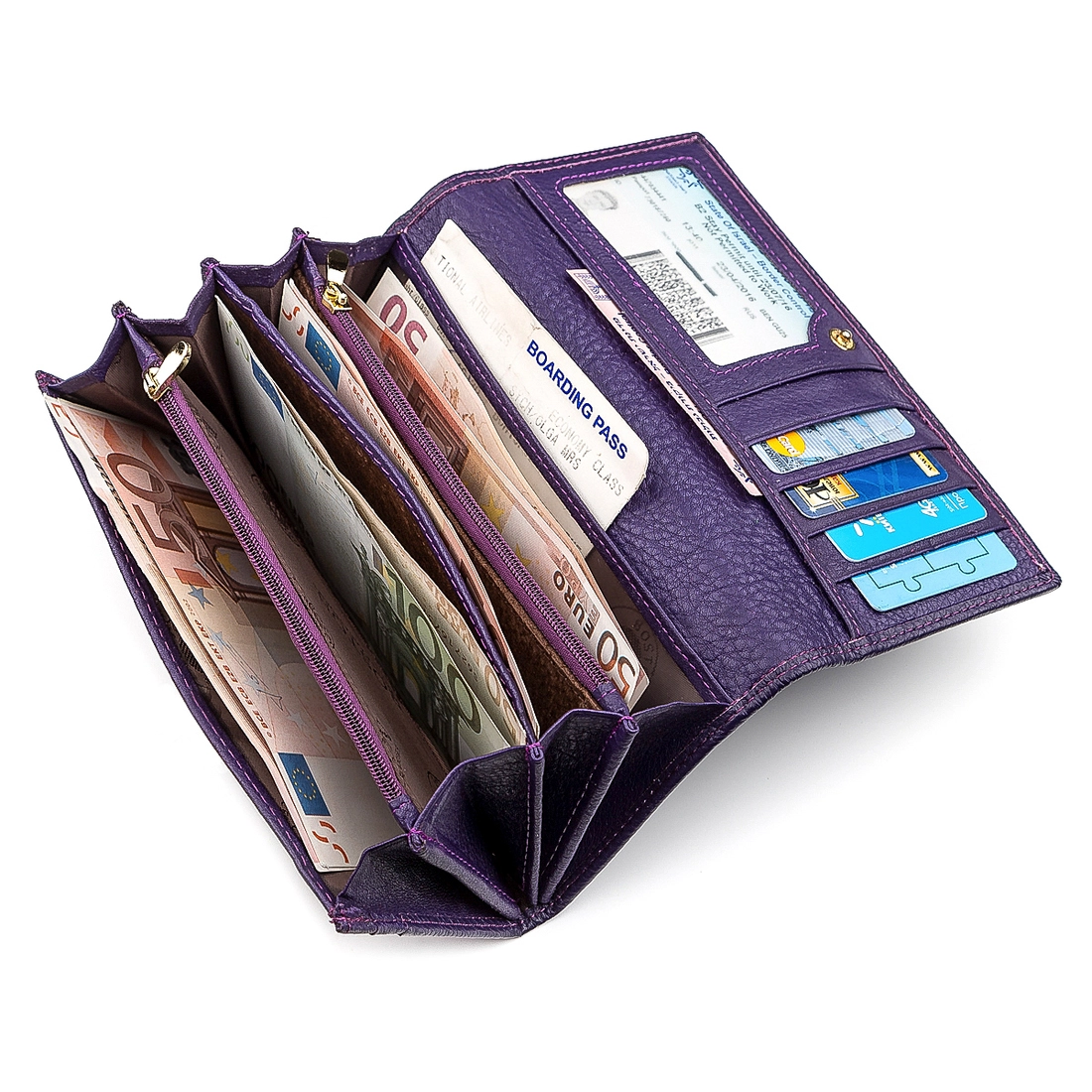 Привлекательный и современный кошелек имеет красочный дизайн, выполненный в фиолетовом цвете, дополненный фирменным значком в золотистом цвете и элегантной надписью. В качестве материала используется натуральная, износостойкая кожа и текстильная подкладка. Снаружи представлен карман на молнии, а внутри есть достаточное количество отделений и ячеек для удобного размещения всего необходимого. Дополняет все положительные стороны и красивая коробка от бренда. Качественные аксессуары по доступным ценам можно приобрести в нашем интернет-магазине, который предлагает надежные и проверенные изделия с большим ассортиментом.