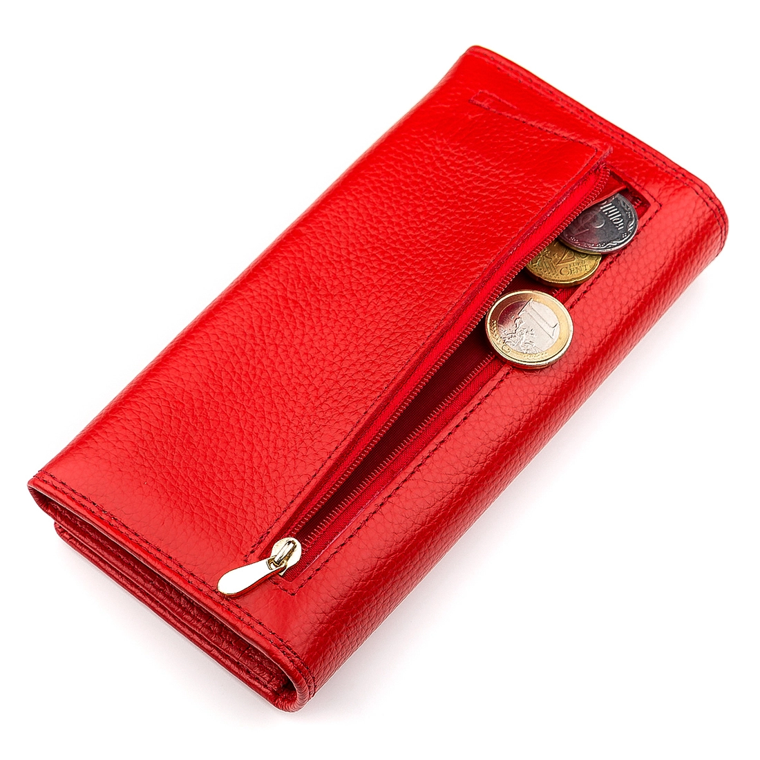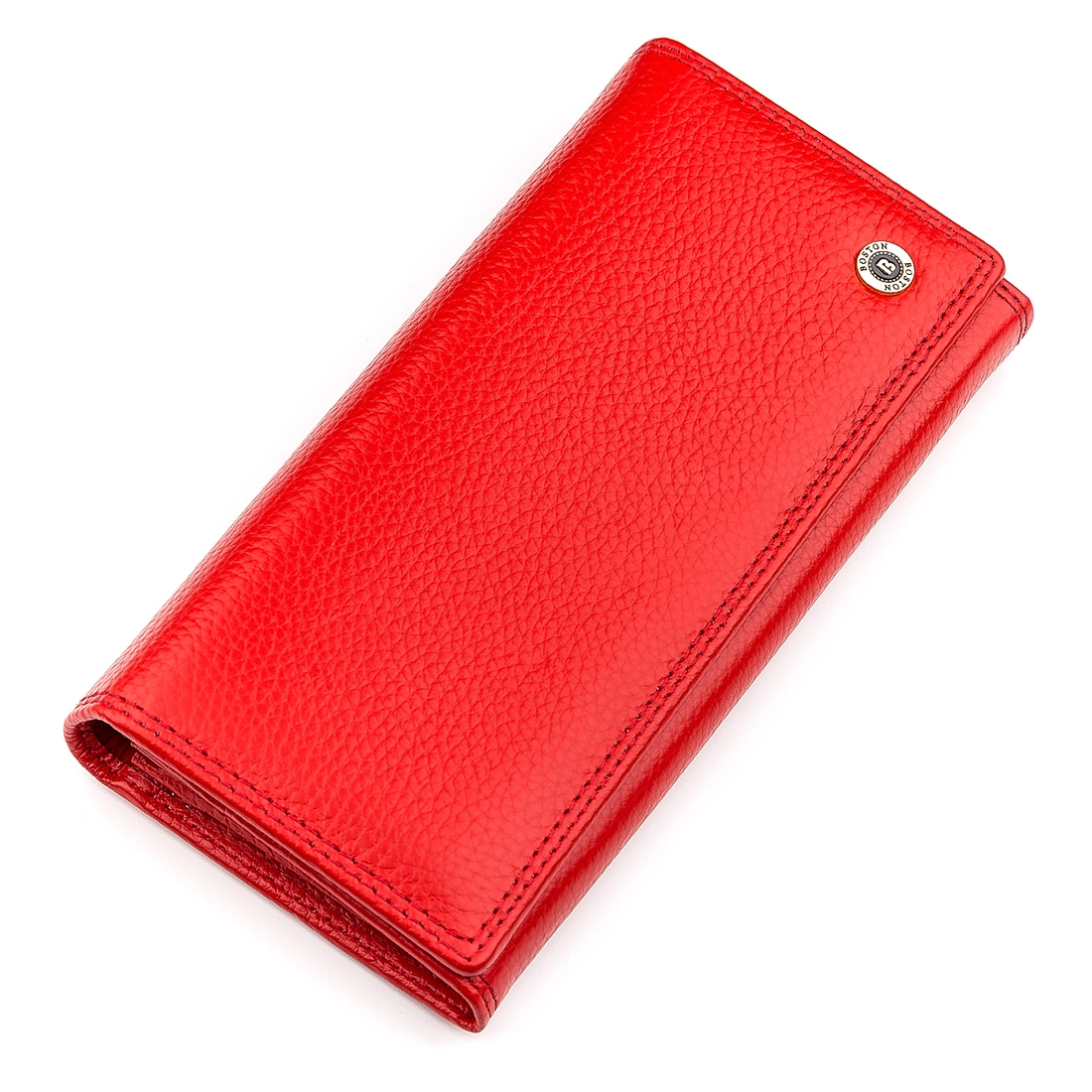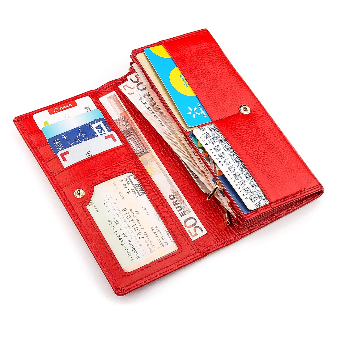 Данный кошелек имеет привлекательный дизайн и производится с очень качественной кожи, имеющей природную фактуру, а также на лицевой части располагается фирменный значок с прошитой надписью снизу. Фурнитура надежная и оформлена в золотистом оттенке, дополняя основной красный цвет. Внутри достаточно места для удобного расположения бумажных купюр, банковских, дисконтных карт, визиток и документов, ведь отделения просторные и выполненные с текстиля. Также есть закрывающиеся карманы, которые еще расположены снаружи. Кошелек упакован в фирменную коробку от производителя. На страницах сайта нашего интернет-магазина есть достаточно большой ассортимент качественных аксессуаров, который понравятся многим, благодаря функциональности и внешней привлекательности.
