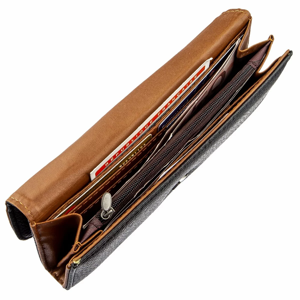 купюр, отделение на молнии и удобные ячейки для кредиток. Внутри
