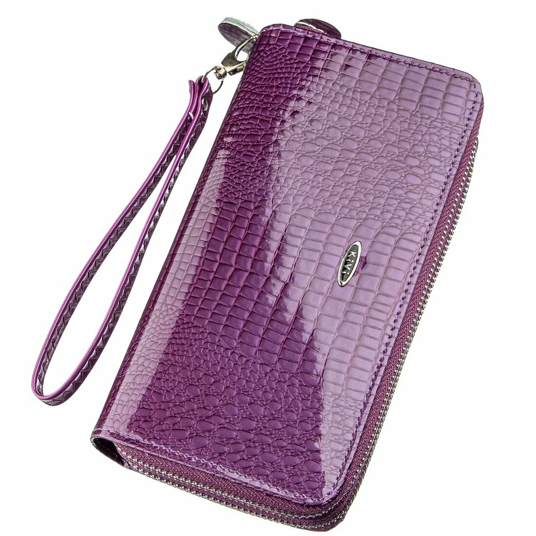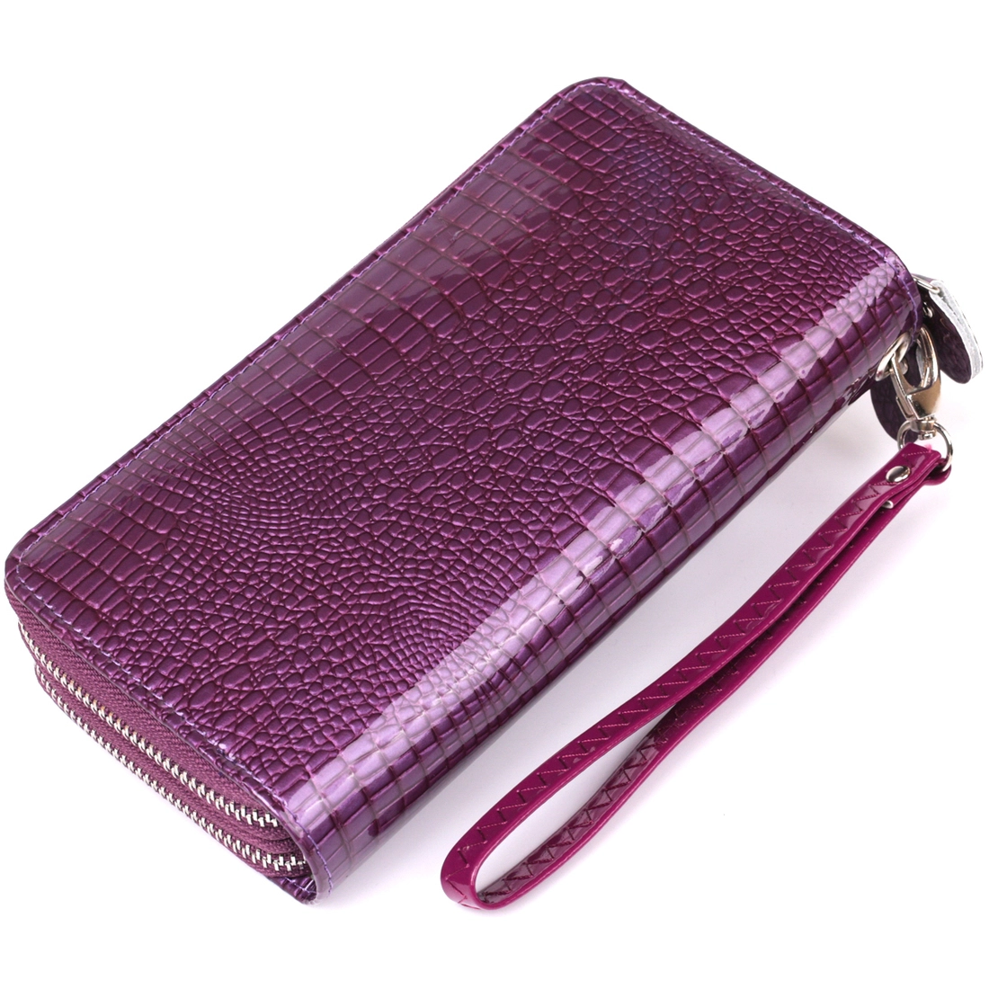 Кошелек яркий фиолетовый хамелеон пошит из экокожи и имеет удобный