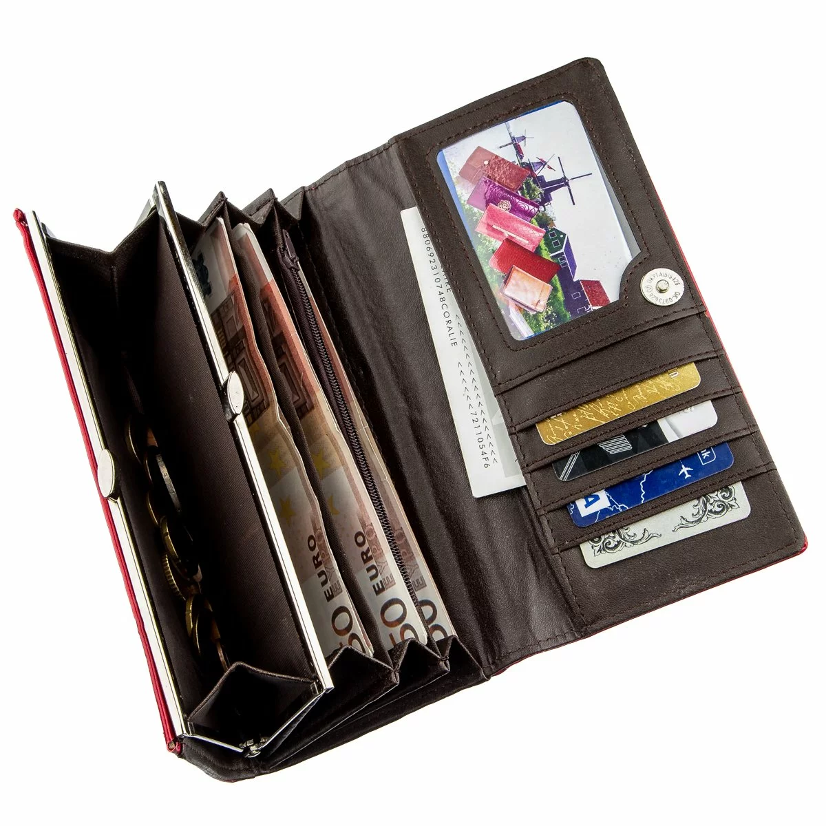 удобную монетницу, просторные отделения для банкнот и отдельный