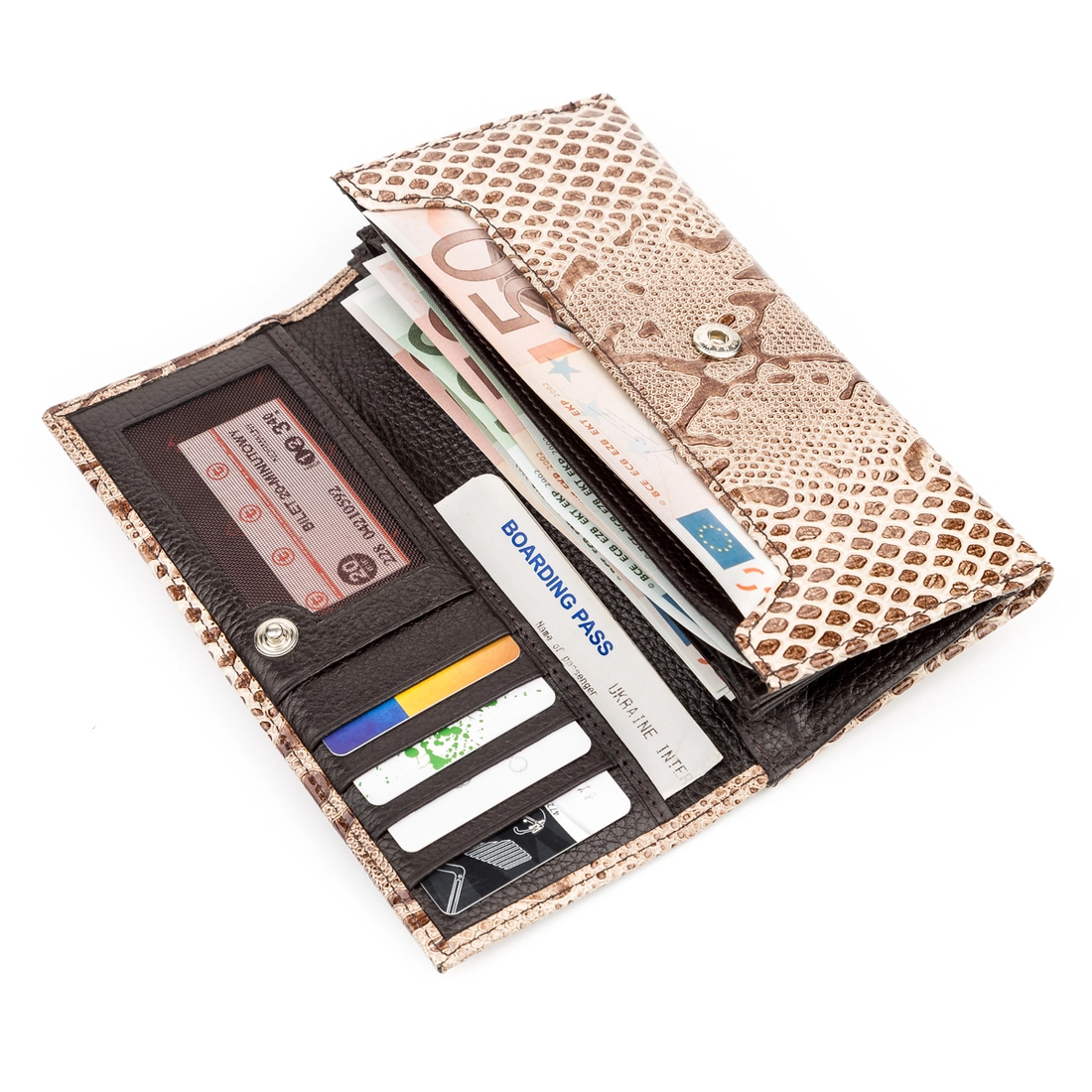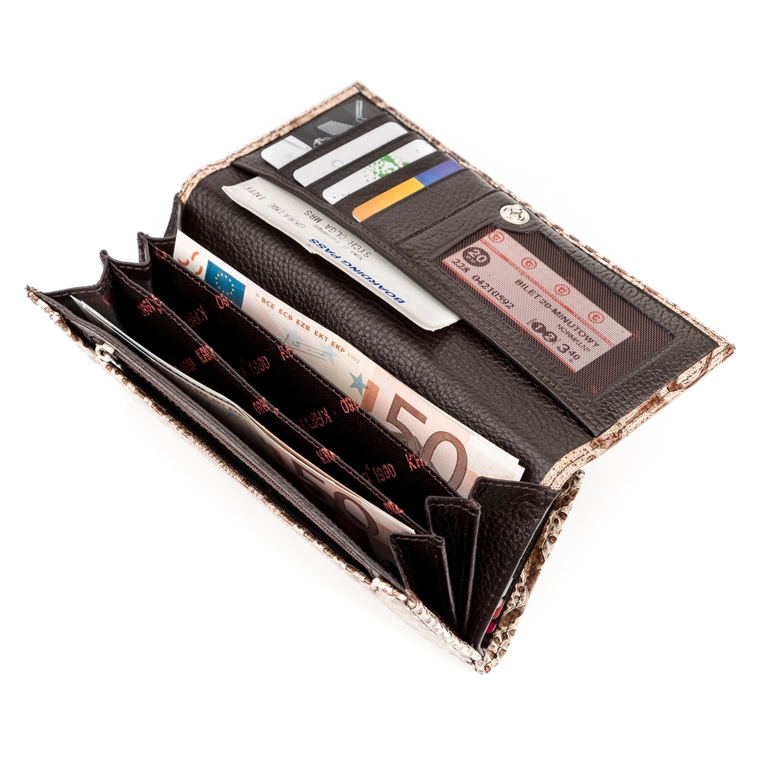 кожи, под рептилию. Кошелек имеет два автономных отделения.