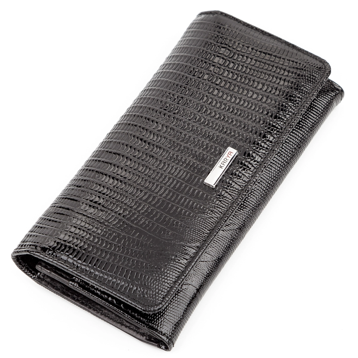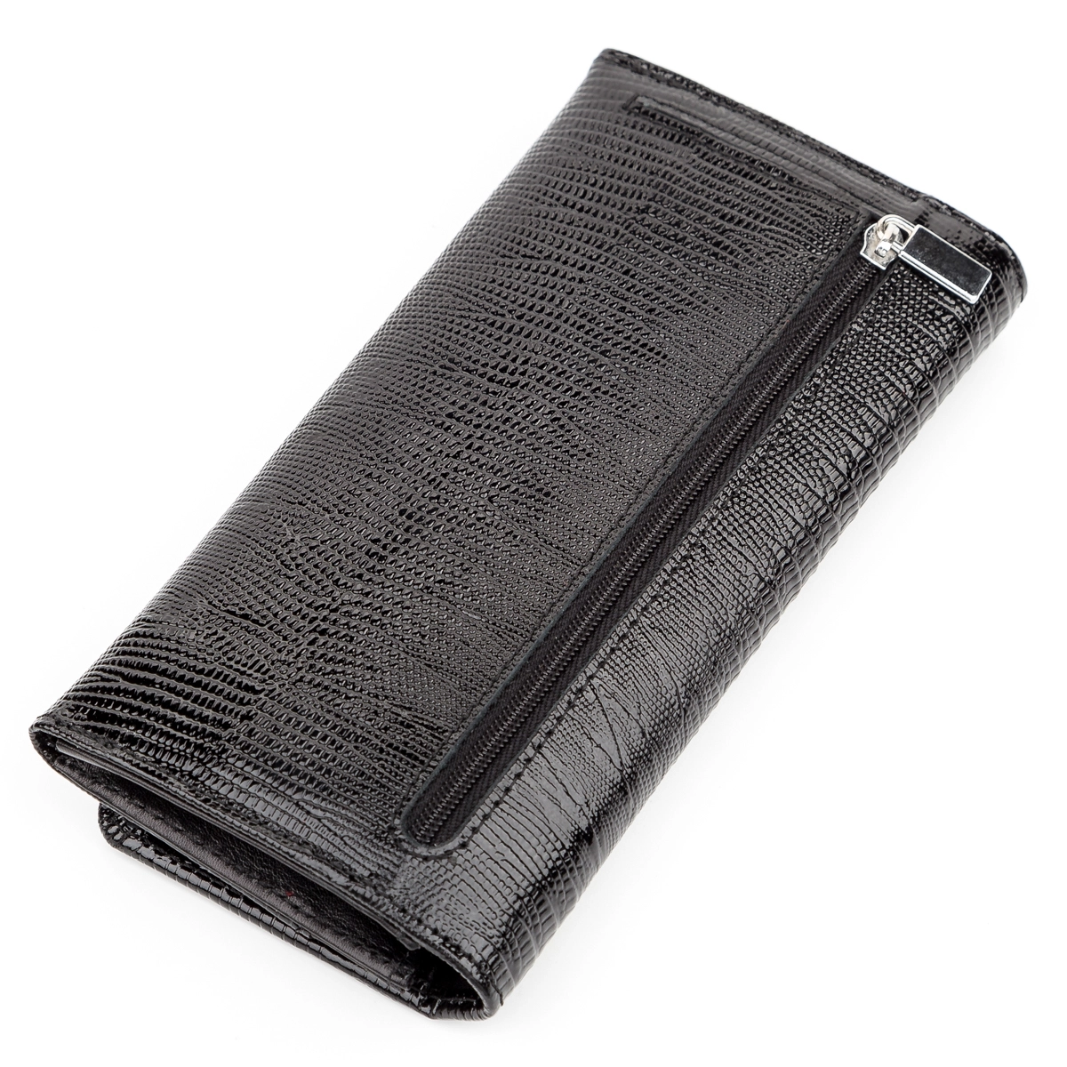 Лакированный классический женский кошелек, из фактурной
