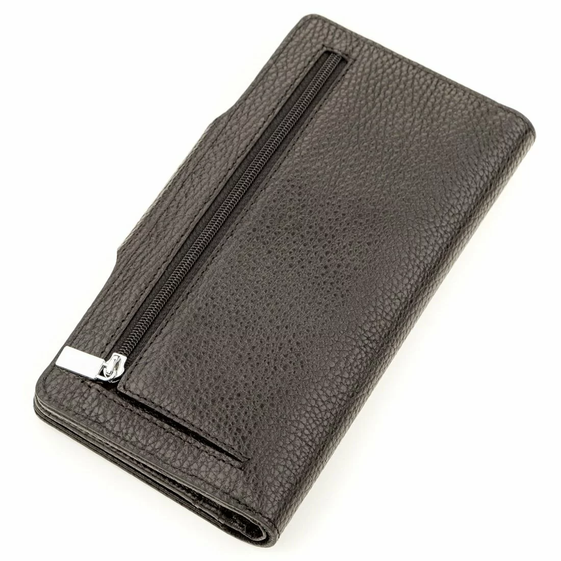 Вместительное мужское строгое портмоне черного цвета с тисненой