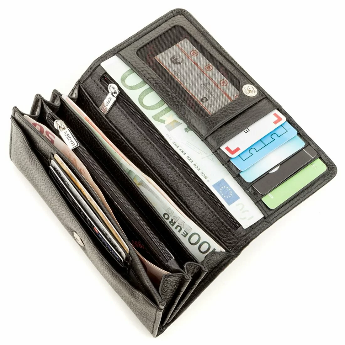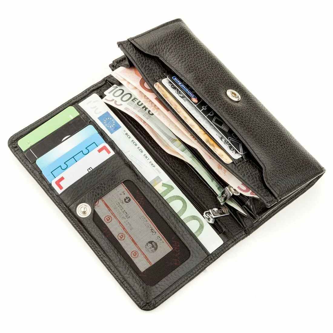 Стильный кошелек черного цвета из натуральной гладкой кожи с