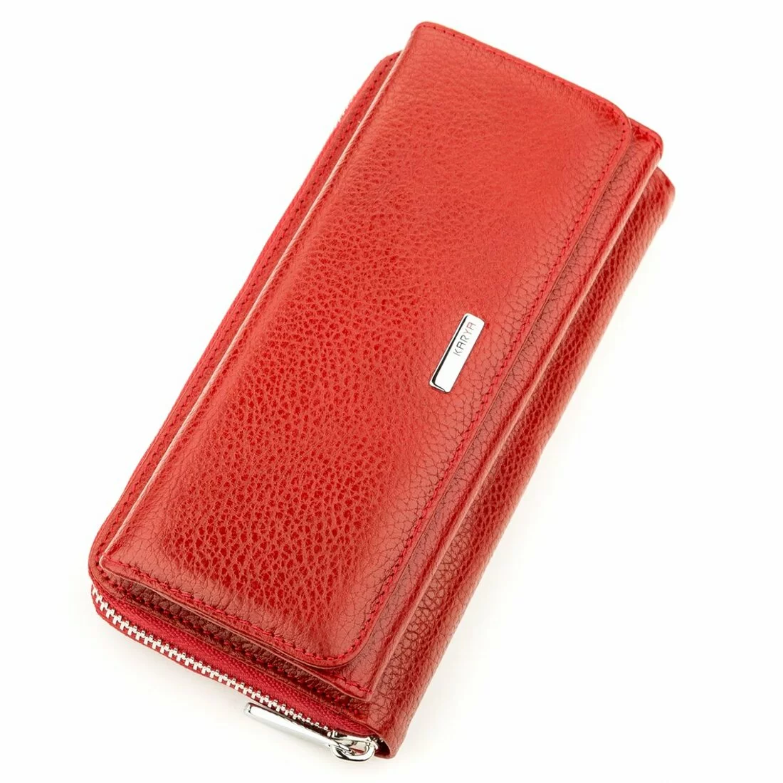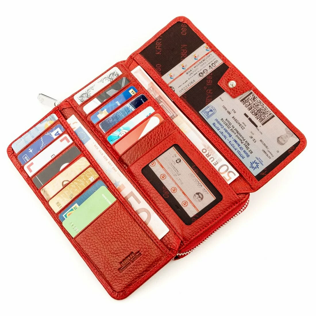 Эффектный, вместительный кошелек-кредитница красного цвета из