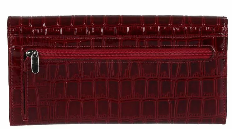 Яркий бордовый компактный кошелек из натуральной кожи «под змею» с