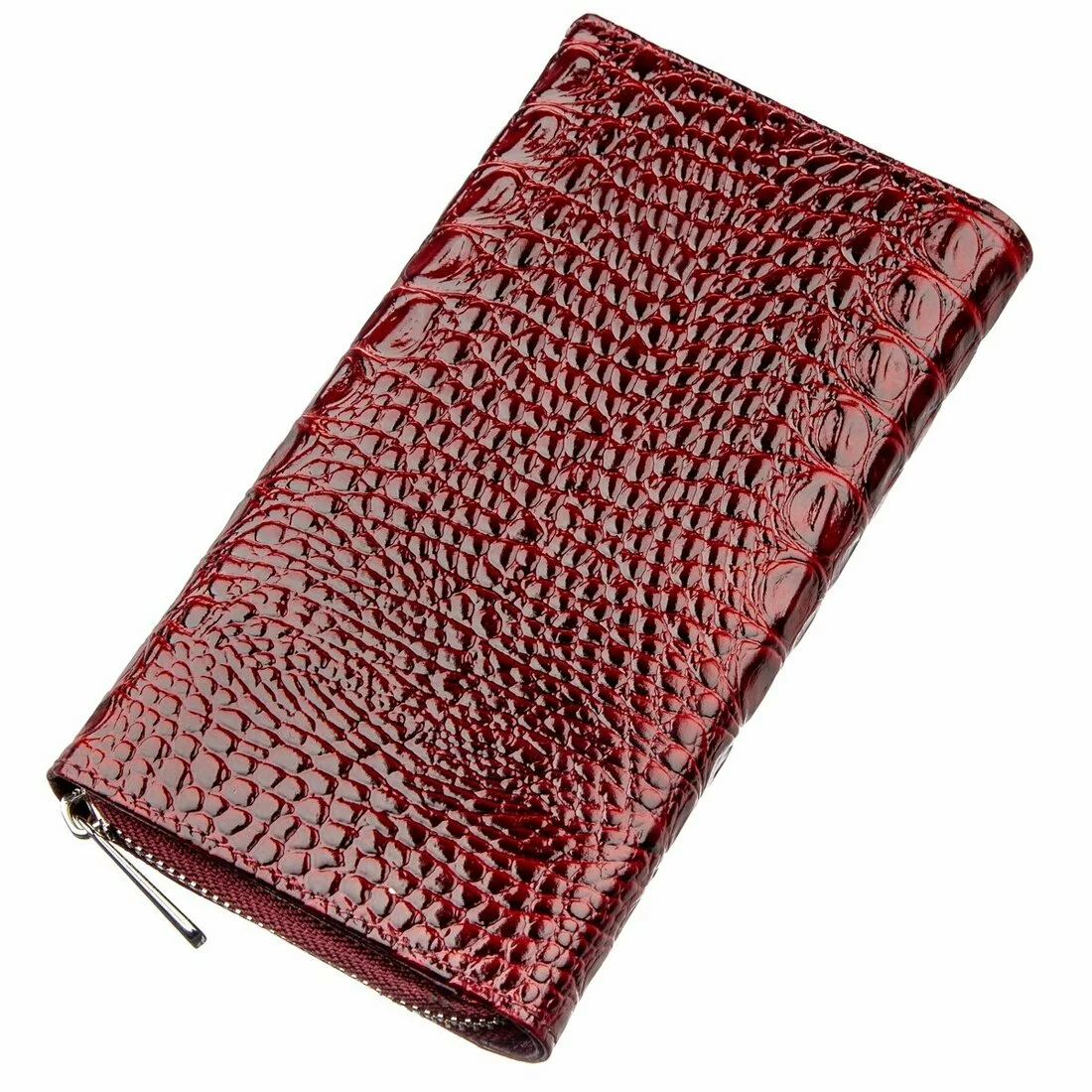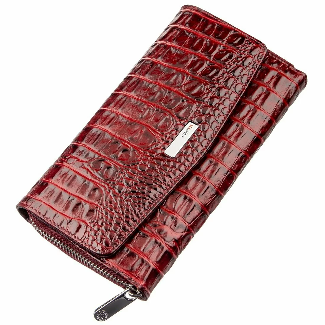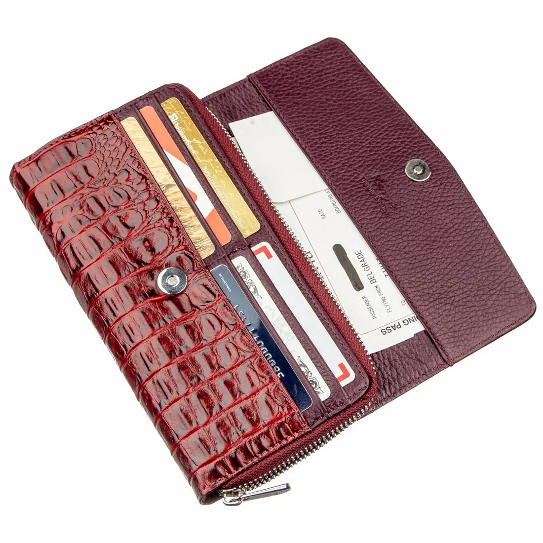 Кошелек выполнен с тиснением под кожу рептилии. Модель носится